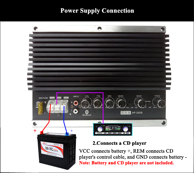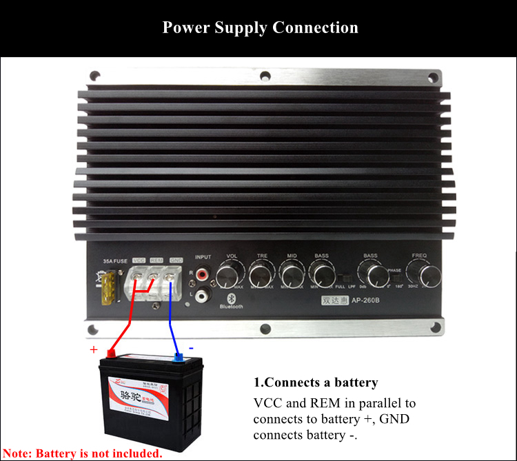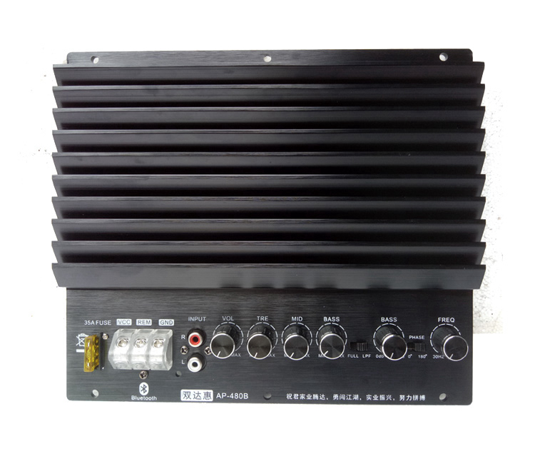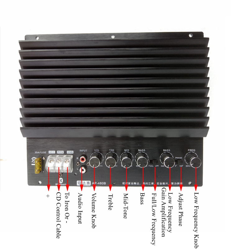 - Function: Built-in Bluetooth, full frequency treble, medium and bass potentiometers are adjustable, with adjustable frequency at low frequency, gain amplification, phase selectable, full frequency and low frequency conversion