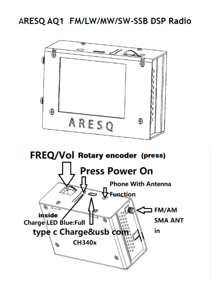 ARESQ AQ1 Mini Full Band Radio All Band Radio Receiver FM LW MW SW-SSB Si4732 Chip with 2.8" Touch Screen