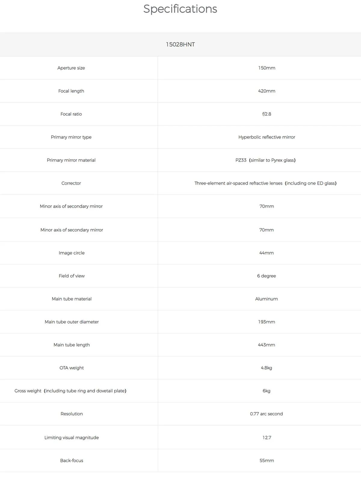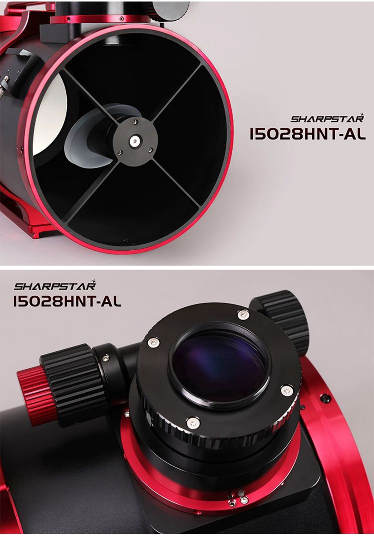 - The 15028HNT-AL has improved the structure of the secondary lens bracket, making it more stable. The secondary lens bracket is manufactured using an integrated CNC manufacturing process, without misalignment, ensuring a beautiful and perfect cross shaped star during astronomical photography.