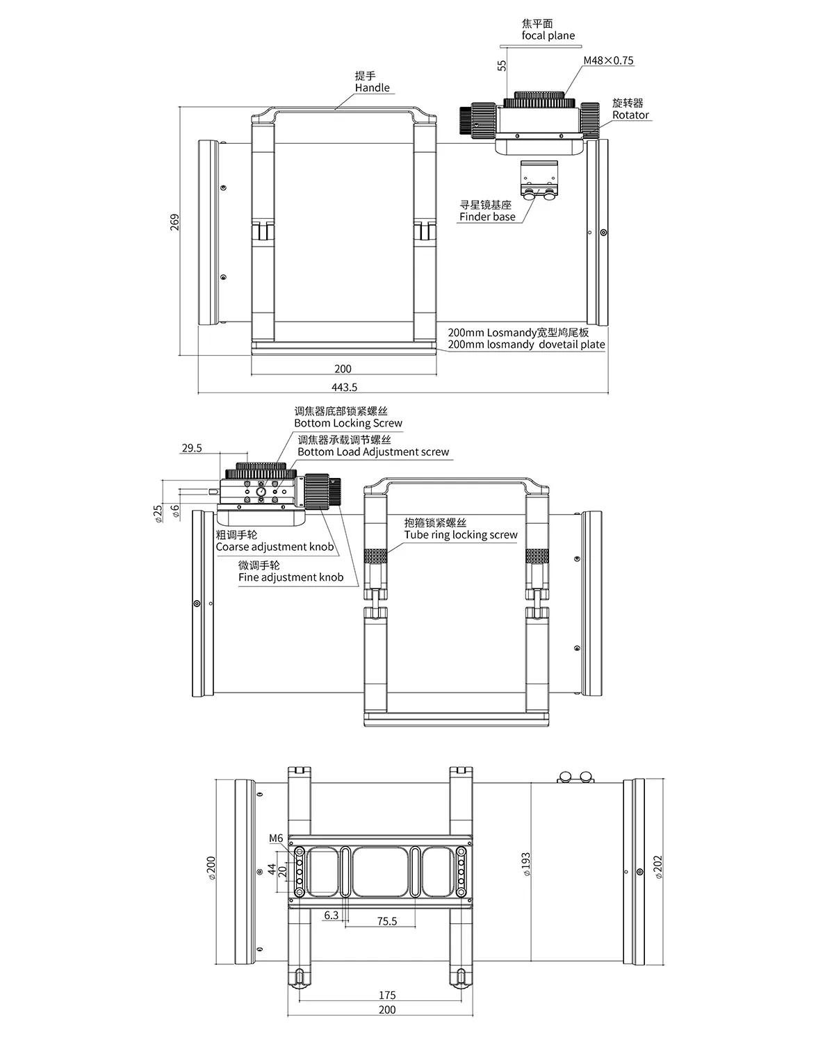 - The dovetail board is of the standard Losmandy type, with a length of 200mm and a handle length of 200mm.