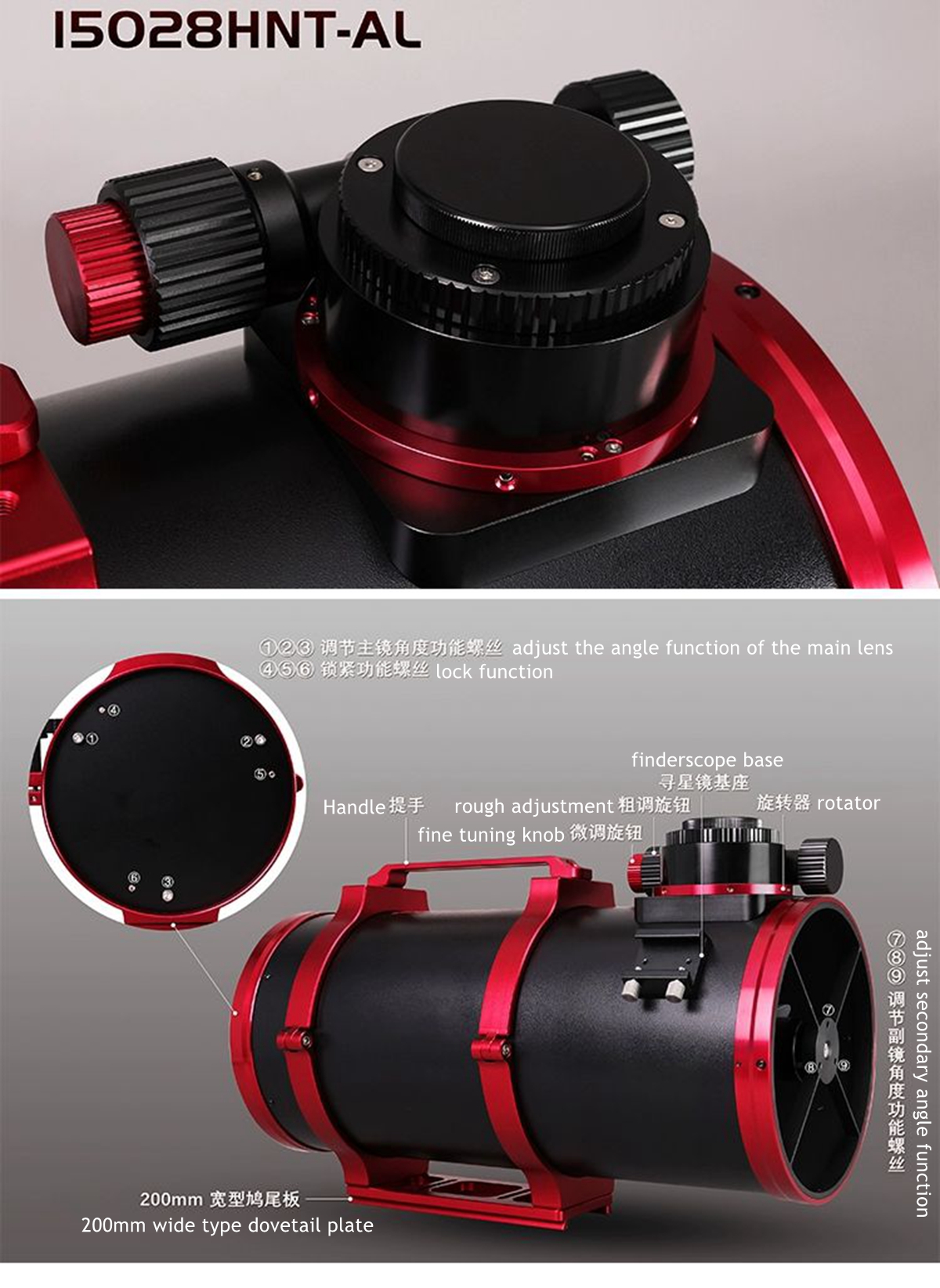 - The 15028HNT-AL further enhances the stability of the main lens optical axis in terms of mechanical structure design. Three sets of push-pull adjustment screws are designed at the bottom of the main lens barrel to adjust the angle of the main mirror.