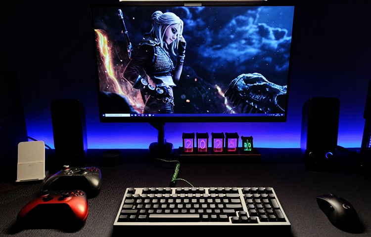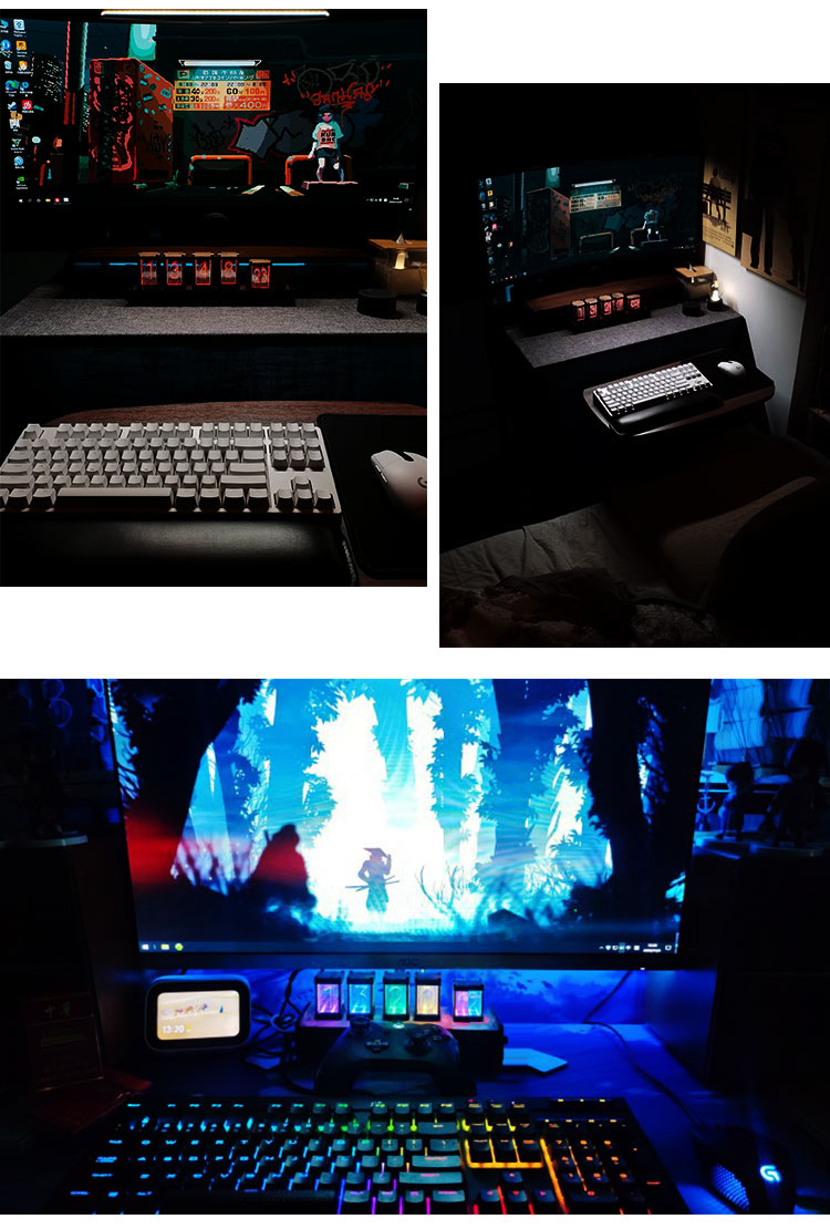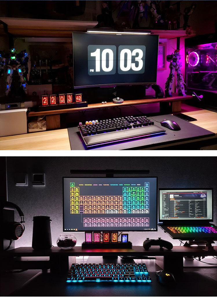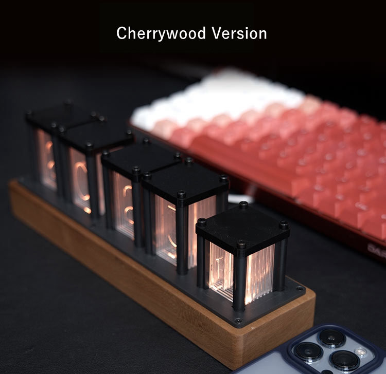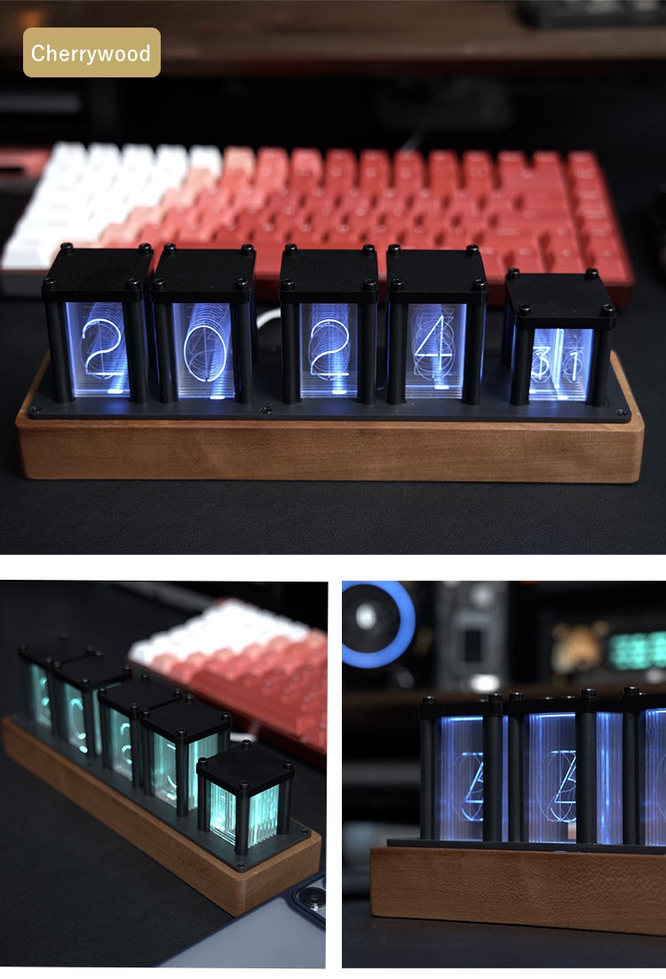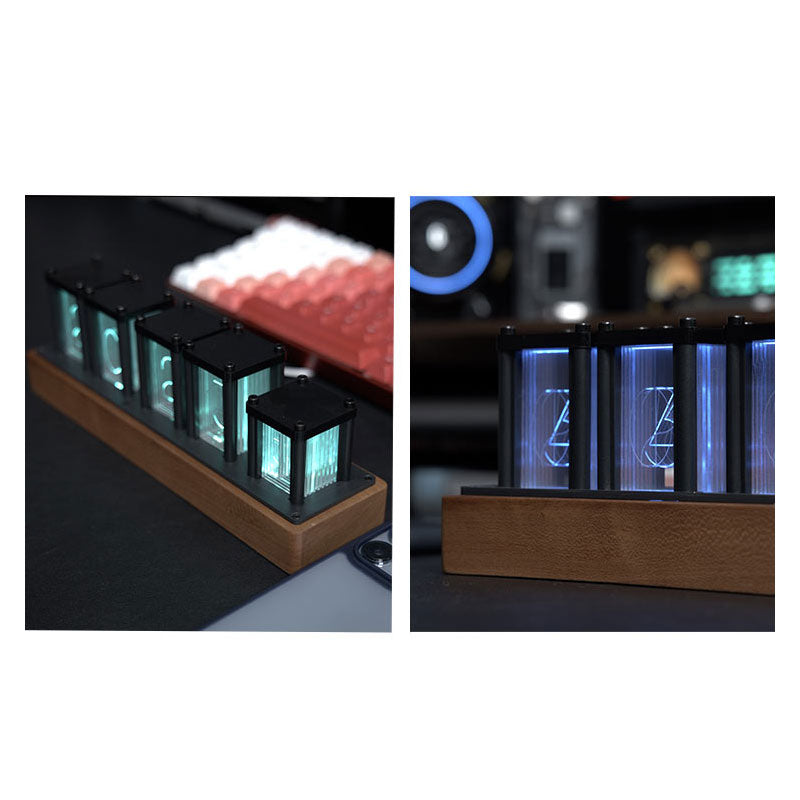 Assembled Cherrywood RGB Pseudo Glow Tube Clock LED Creative Desktop Decoration Digital Clock