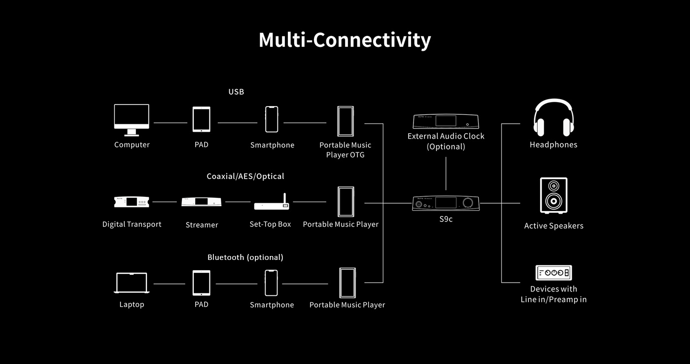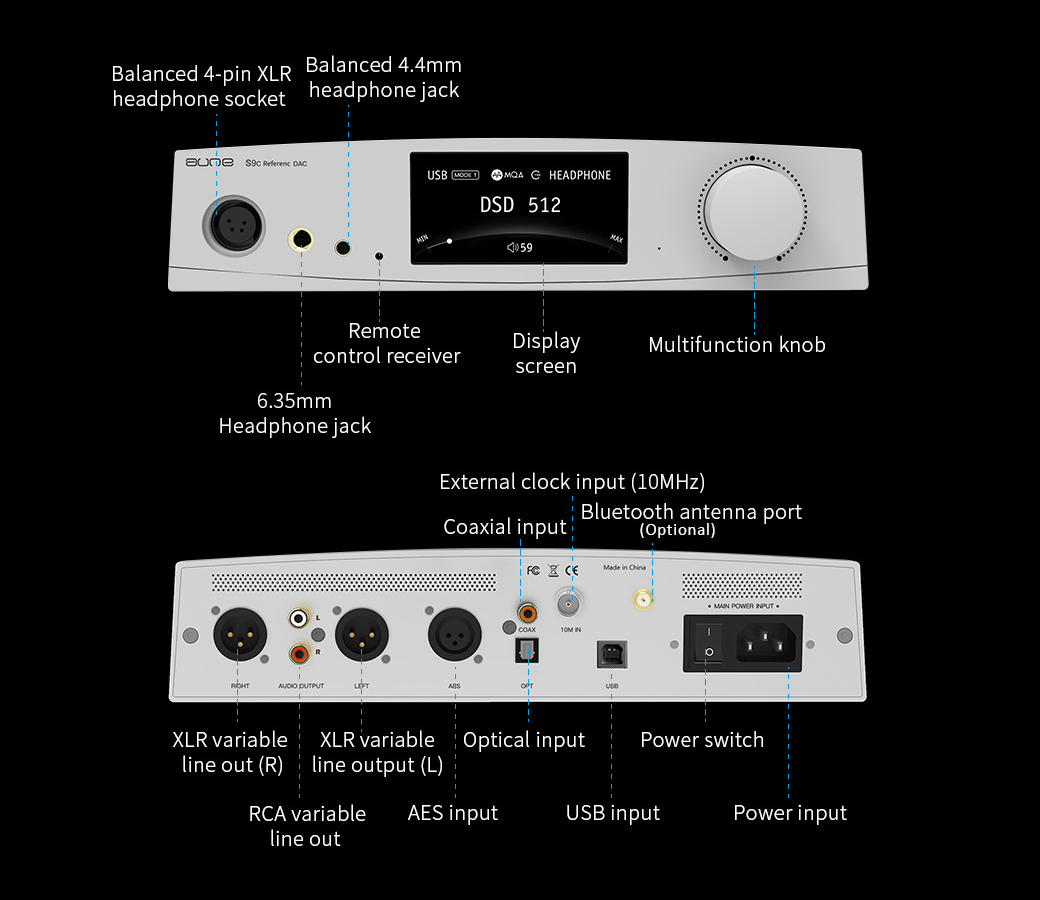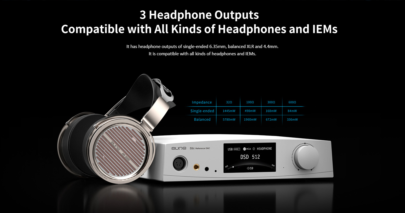 Aune S9C-BT Black Bluetooth DAC Headphone Amp for Balanced XLR 4.4MM & Sing-Ended 6.35MM Headphones