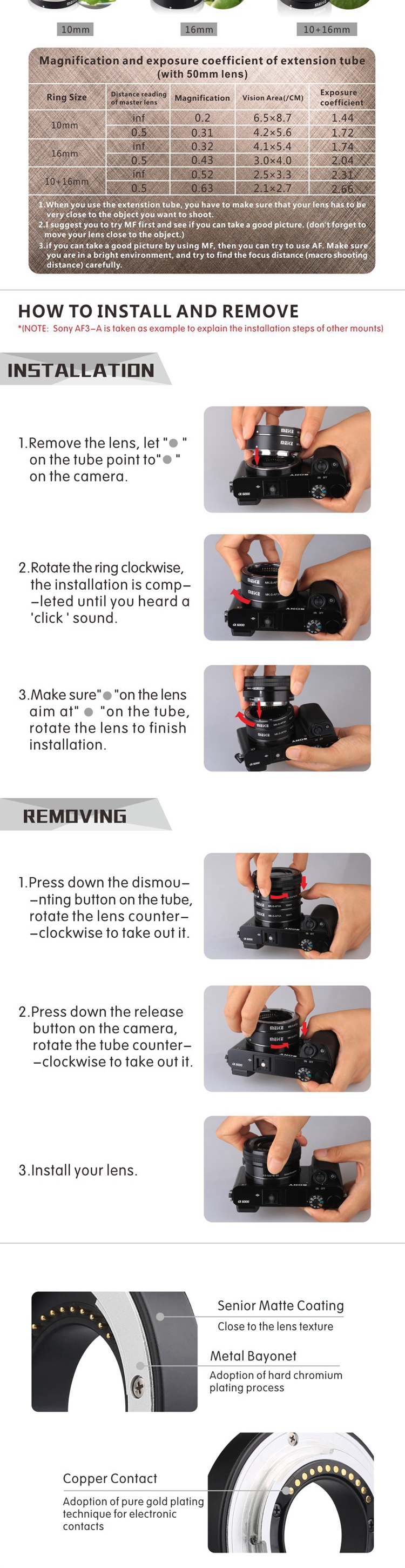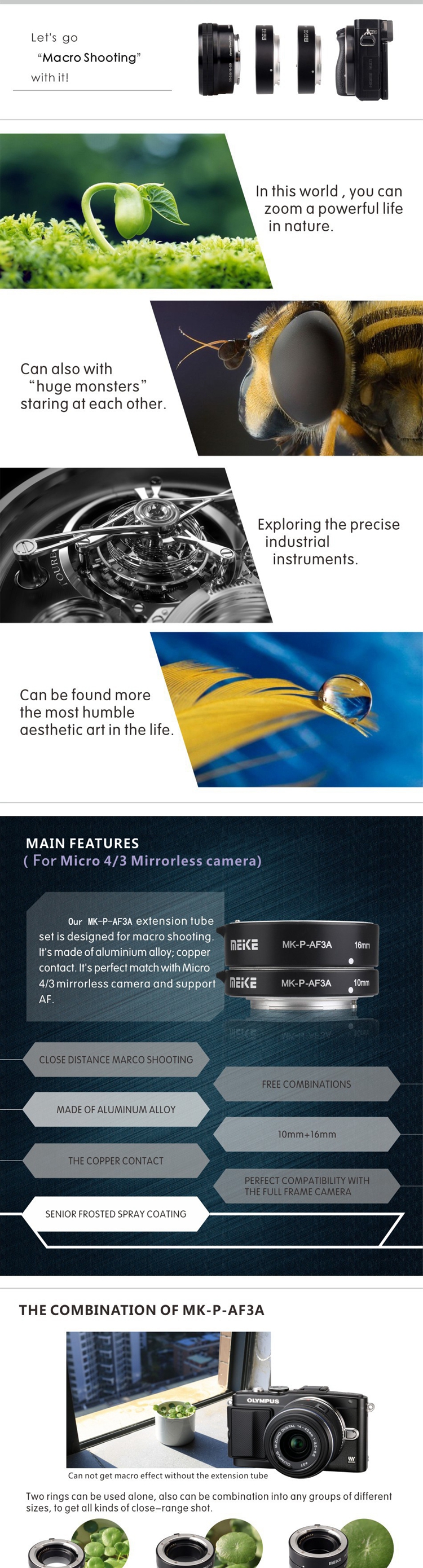 Auto Focus Extension Tube Ring 10MM 16MM for M4/3 Panasonic Olympus Mirrorless Cameras MK-P-AF3A