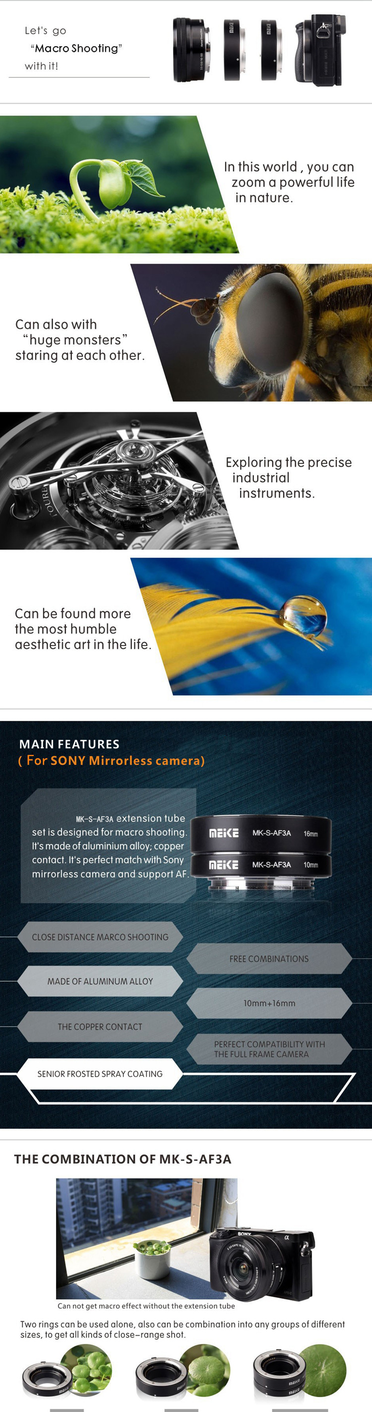 Auto Focus Macro Extension Tube Adapter Ring 10mm+16mm for Sony Mirrorless E- & FE-Mount MK-S-AF3A