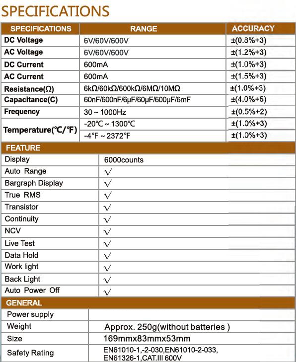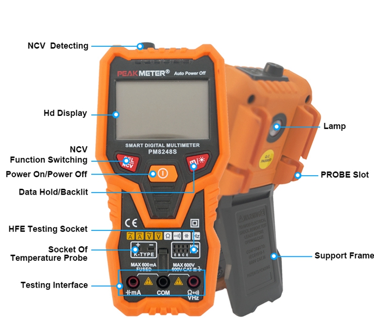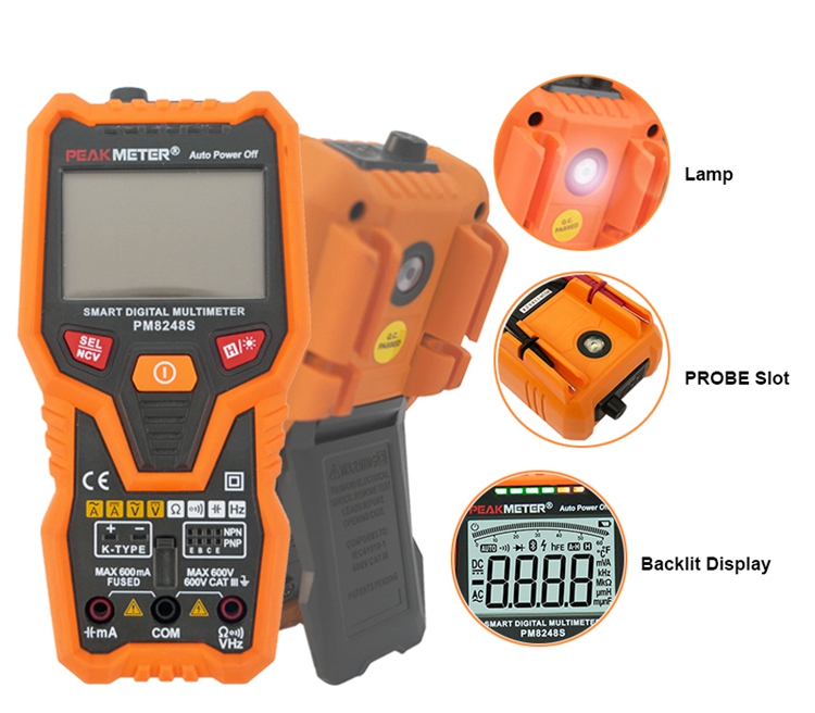 Auto Range Digital Multimeter Voltmeter NCV Frequency Backlight Temperature Transistor Test PM8248S