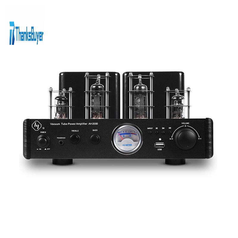 AV-2030 Black Vacuum Tube Power Amplifier 30Wx2 Headphone Amplifier DAC VU Meter Fits Home Speakers