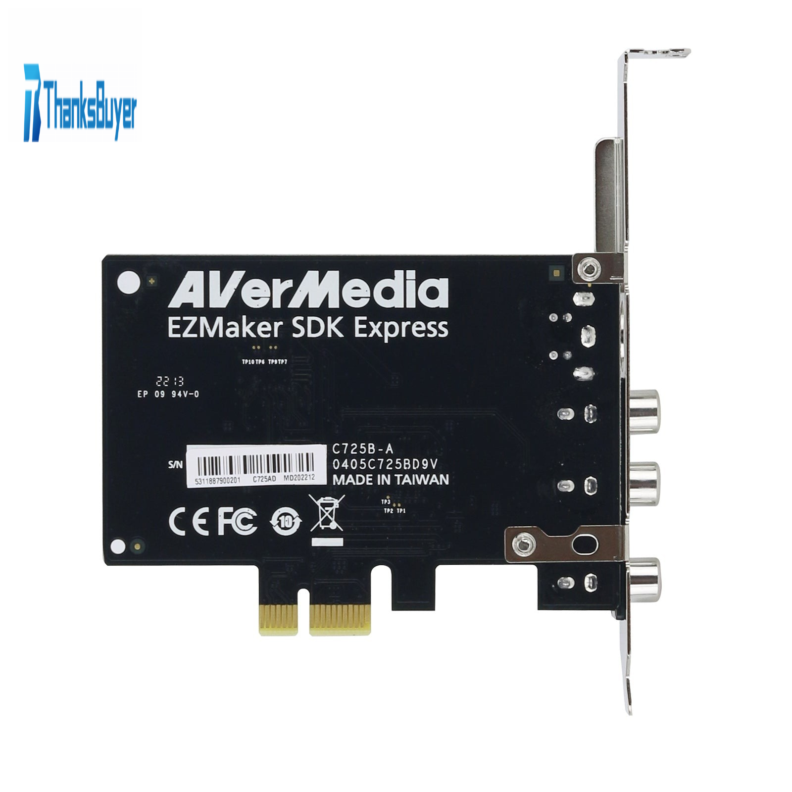 AVerMedia EZMaker SDK Express (C725B) is a PCI-E video card equipped with composite, s-video and stereo audio inputs for digitizing videos from analog signals into uncompressed AVI format at 25/30 fps in a wide range of resolutions. It supports PAL, NTSC and SECAM video standards, and also comes with a software development kit which includes frequently used applications for system developers to integrate apps in various operation platforms.