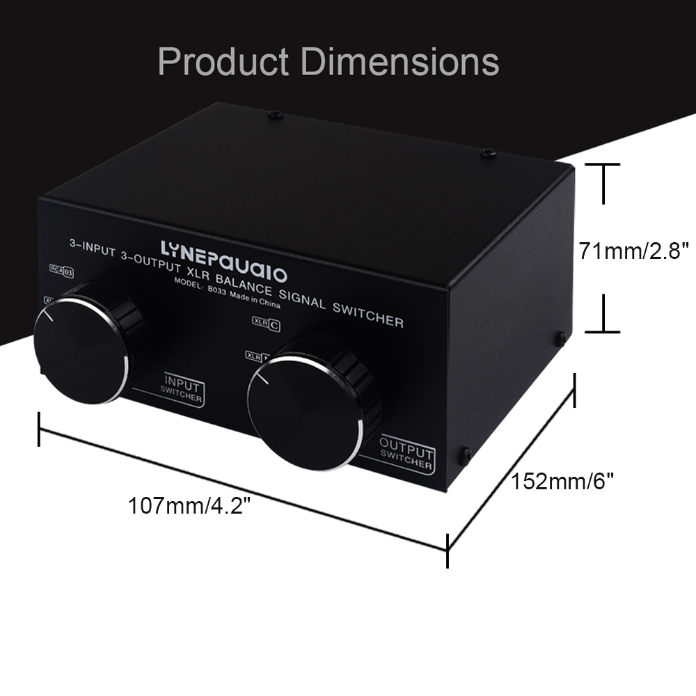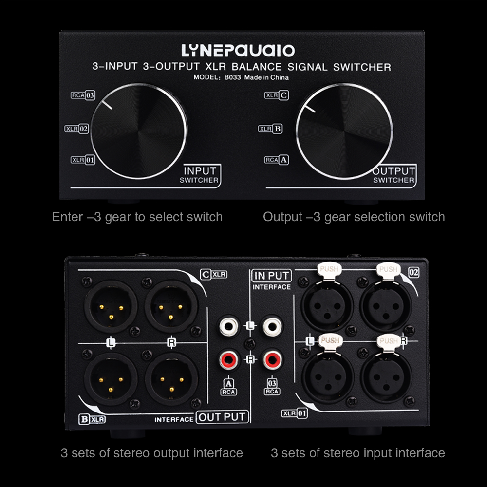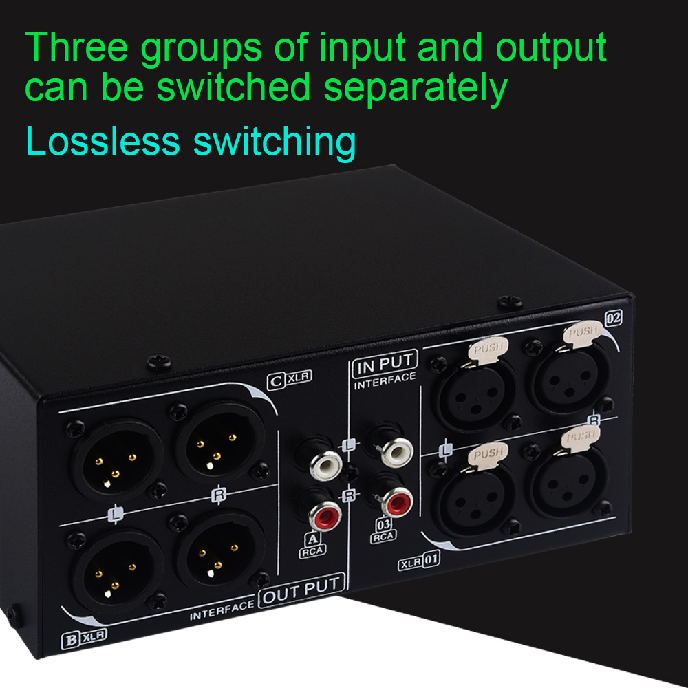 B033 Audio Switcher 3-Input 3-Output Audio Selector Suitable for Balanced XLR to Non-Balanced RCA
