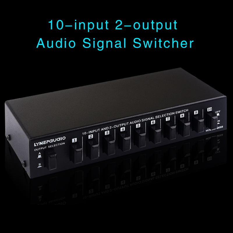 - 10 sets audio frequency signal select shift device solve the complex circuit plug in and out operation, unify connect the equipment signal source which need input to the shift device then easily convenient to select