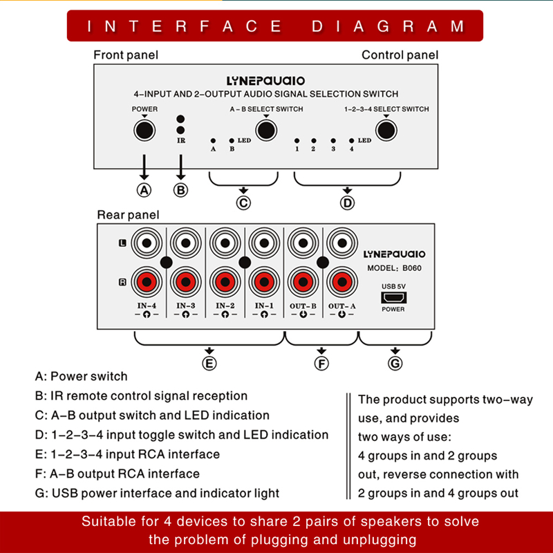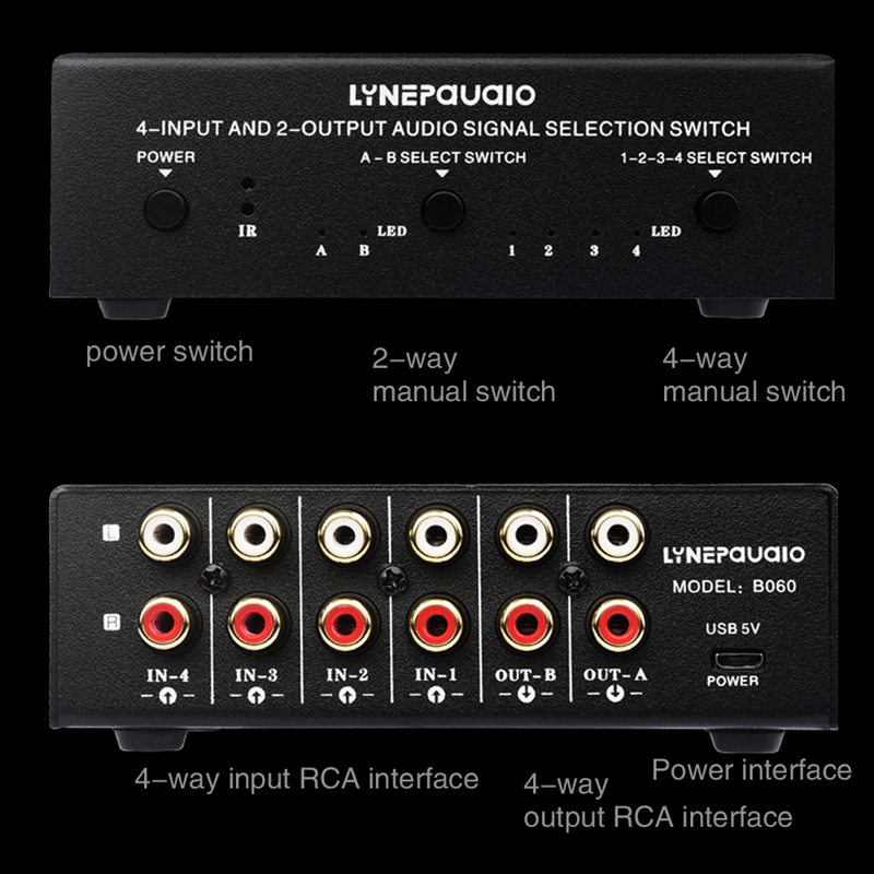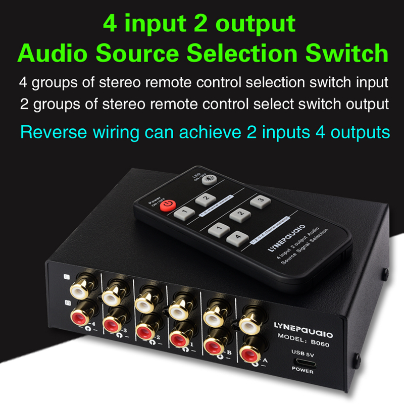 B060 Audio Selector Audio Switcher 4 IN 2 OUT or 2 IN 4 OUT Lossless Bidirectional Switching