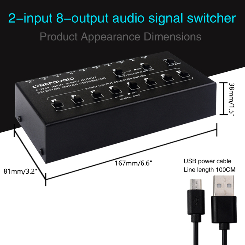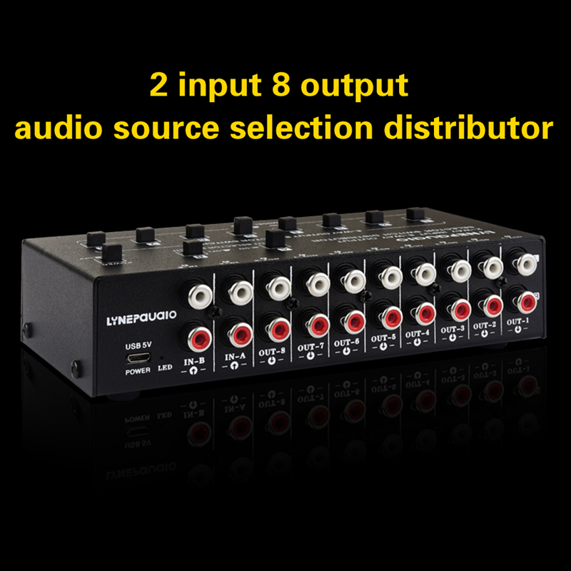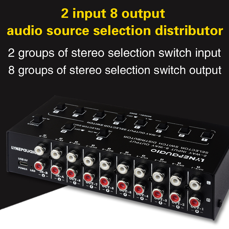 - 8 sets stereophonic output has independent switch, able to start at the same time, also able to be closed independently, start at the same time no consumption at the signal source tone quality and volume.