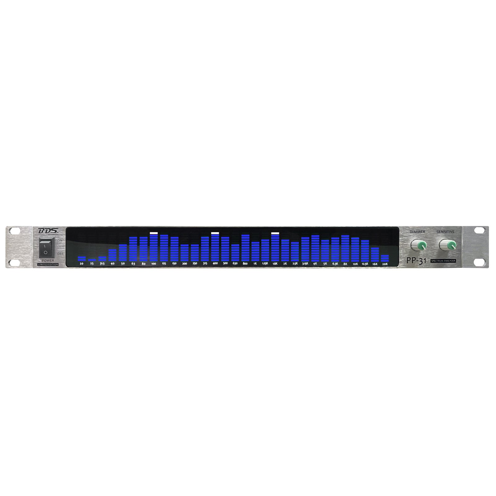 BDS PP-31 Digital Audio Spectrum Analyzer Display 1U Music Spectrum VU Meter 31 Segments (Silvery Panel + Blue LED)