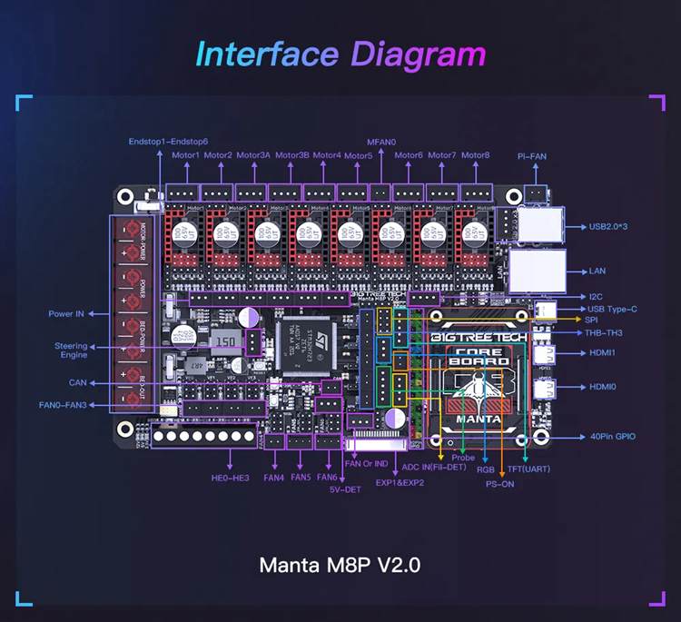 BIGTREETECH Manta M8P V2.0 3D Printer Motherboard 3D Printer Accessory for Klipper Voron 3D Printer