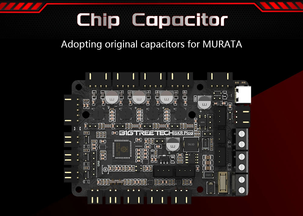 - Mute Printing & Premium Capacitors. Featured with TMC2209 mute driver UART mode, SKR PICO V1.0 supports mute 3D printing. The main version of the chip capacitor (MLCC) adopts original quality capacitors (for Murata) to enhance the product's quality.