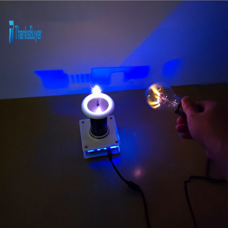 - Tesla coils can generate a high-frequency and high-voltage electromagnetic field. When some gas containing lamps approach, the gas inside the lamp will emit various lights under the action of the electromagnetic field. Common lamps include fluorescent lamps, incandescent lamps, neon lamps, disinfectant lamps, and some rare gas glass tubes. Different lighting fixtures have different effects, and due to the high power of our coil, the effect and distance of isolated lighting are currently the best on the market.