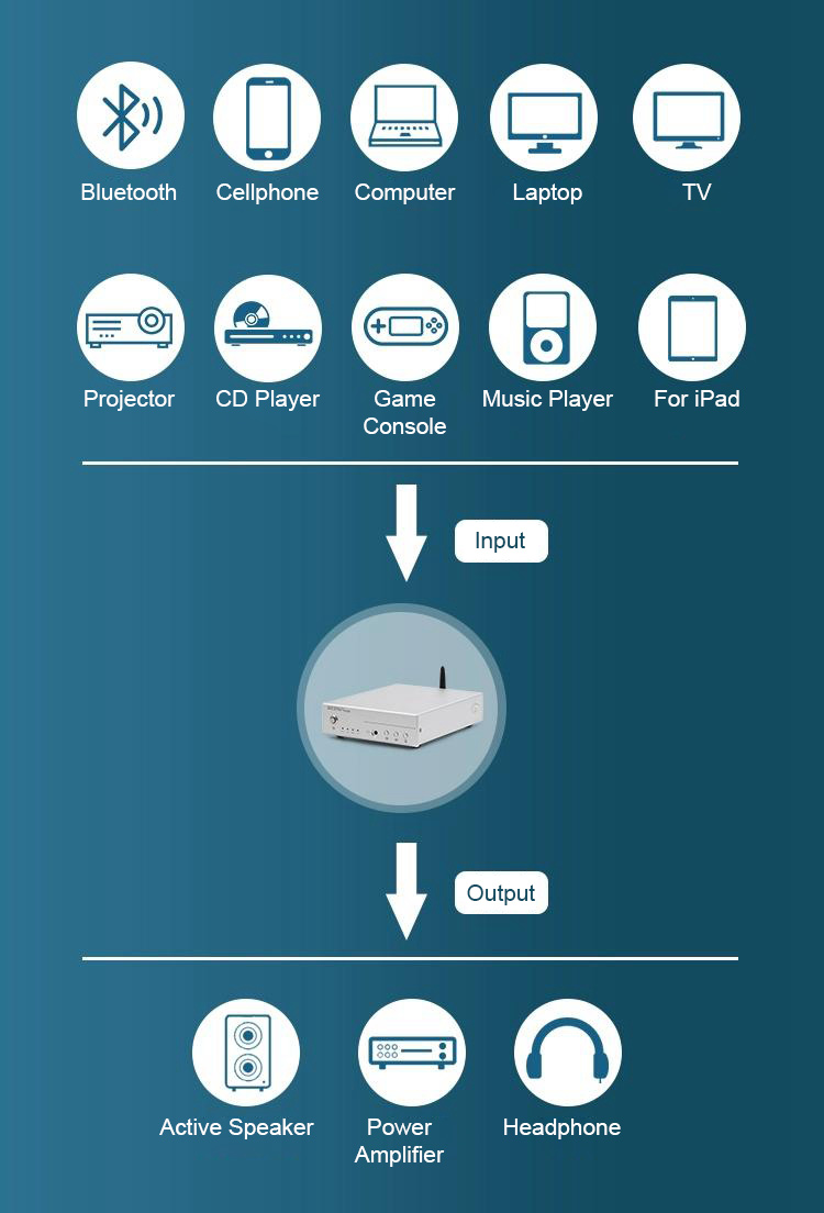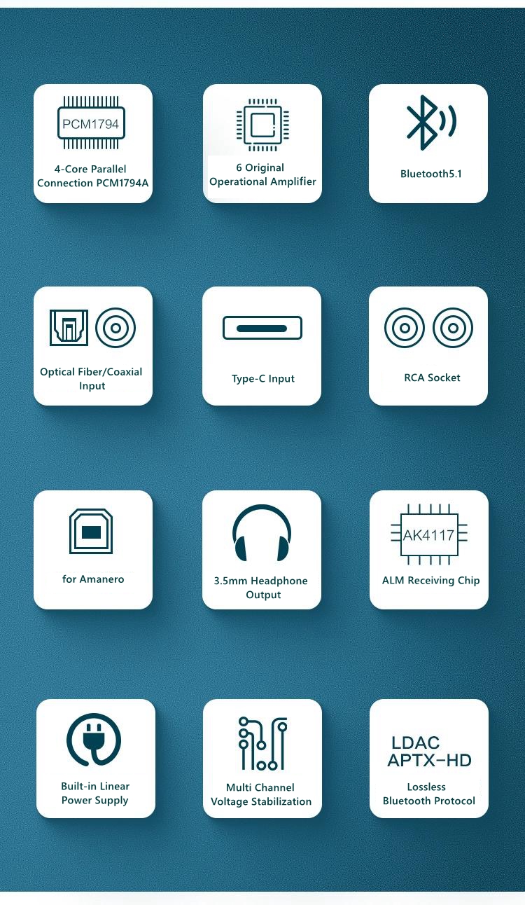 - Sampling rate: optical fiber/coaxial/for Amanero USB 24bit/192KHz Bluetooth/Type-C USB 24bit/96KHz