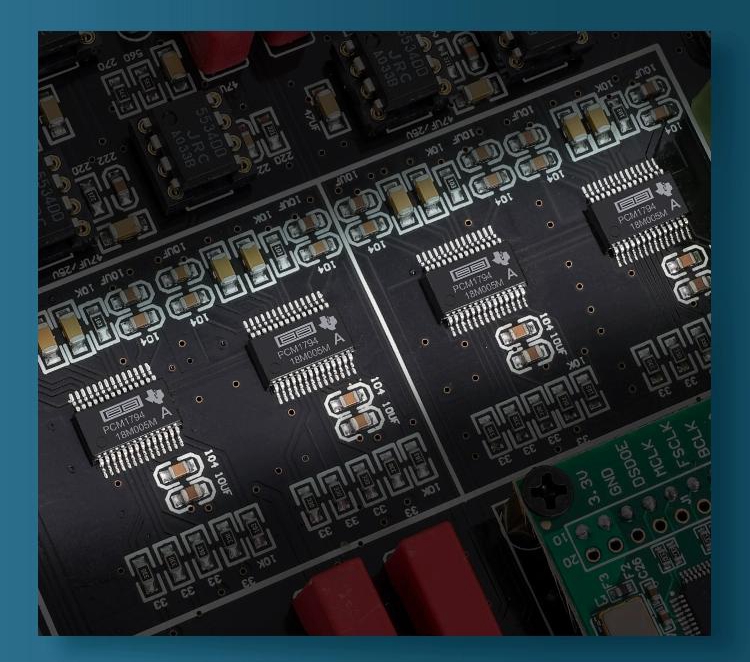 - Four PCM1794 decoding chips with up to 8 channels of output, effectively improving the resolution and thickness of sound.