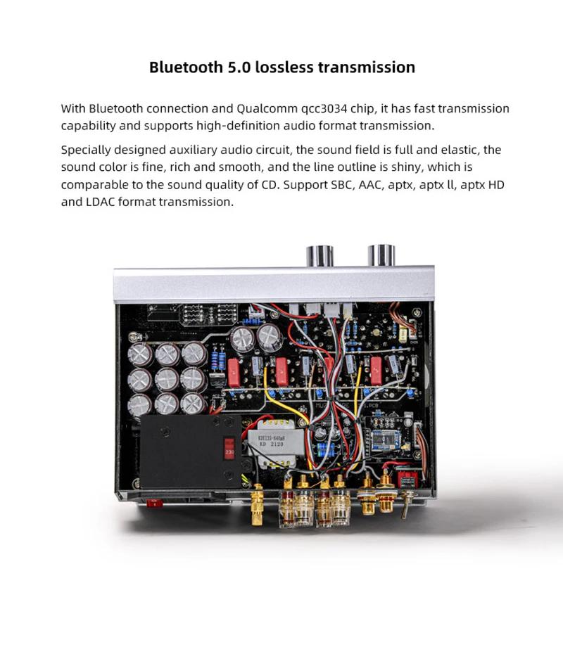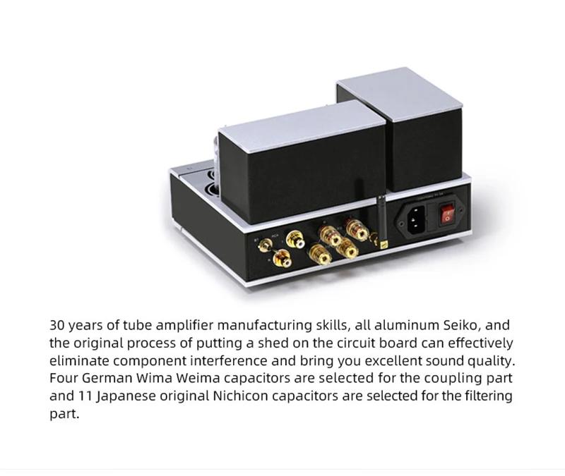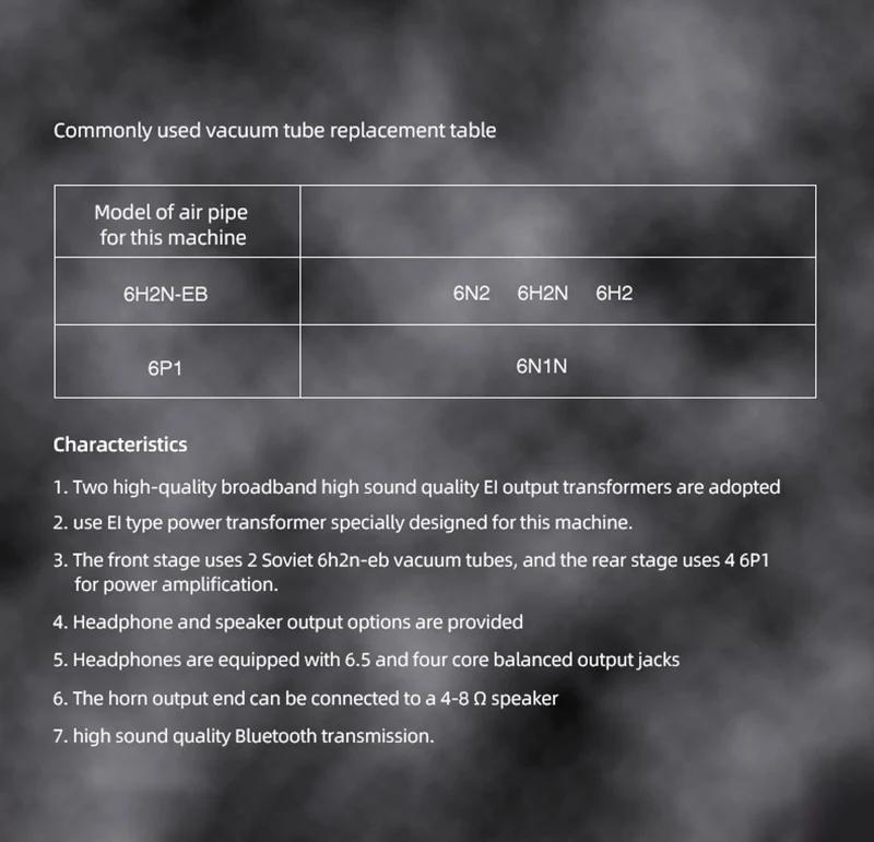 - The front stage uses 2 Soviet 6H2N-EB vacuum tubes, and the rear stage uses 4 6P1 for power amplification.