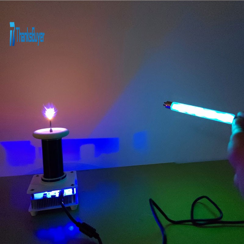 - Tesla coils can generate a high-frequency and high-voltage electromagnetic field. When some gas containing lamps approach, the gas inside the lamp will emit various lights under the action of the electromagnetic field. Common lamps include fluorescent lamps, incandescent lamps, neon lamps, disinfectant lamps, and some rare gas glass tubes. Different lighting fixtures have different effects, and due to the high power of our coil, the effect and distance of isolated lighting are currently the best on the market.