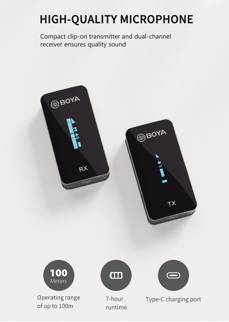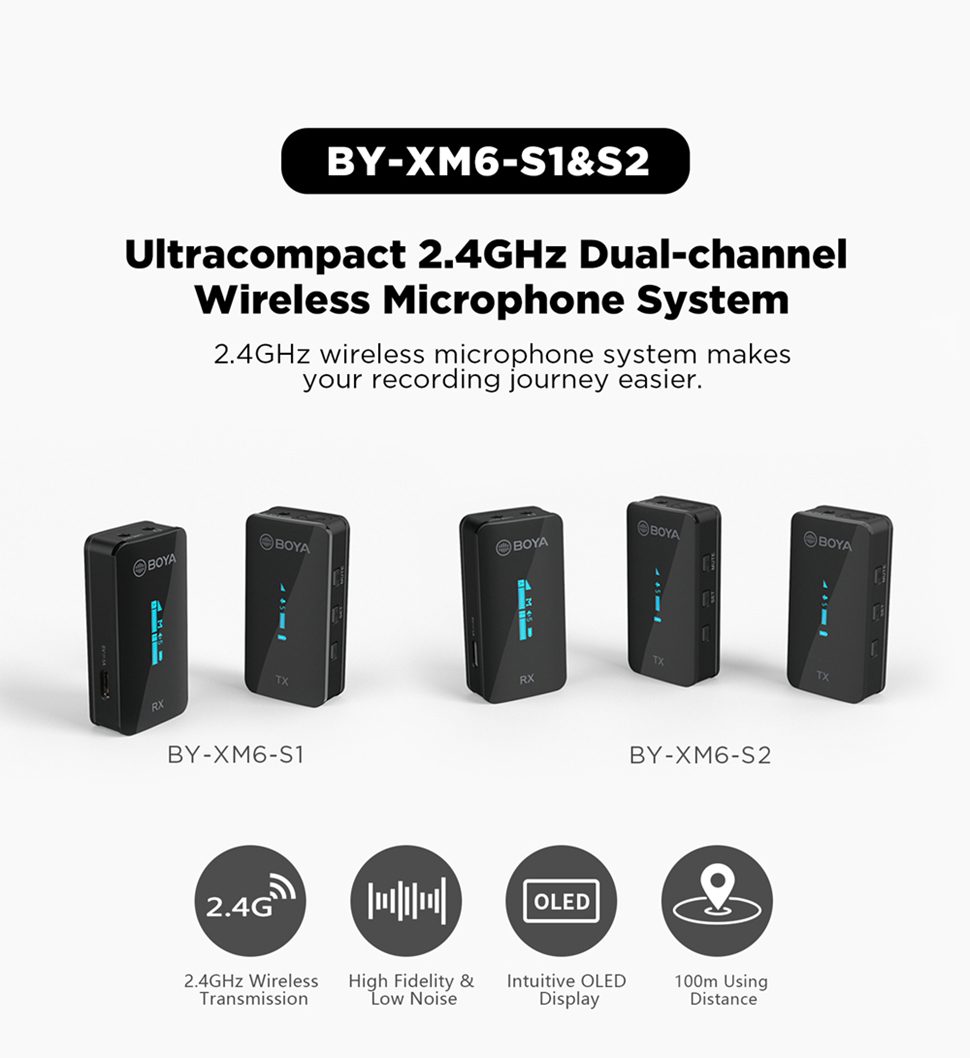BOYA BY-XM6-S2 2.4GHz Wireless Lavalier Microphone System Lavalier Mic (1 RX + 2 TX) for Phone DSLR