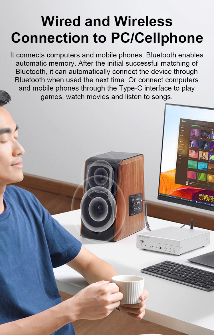 - Coaxial, optical and USB input support 192K 24BIT transmission. The high-precision Bluetooth 5.1 chip QCC5125 supports for LDAC and APTX-HD lossless transmission.