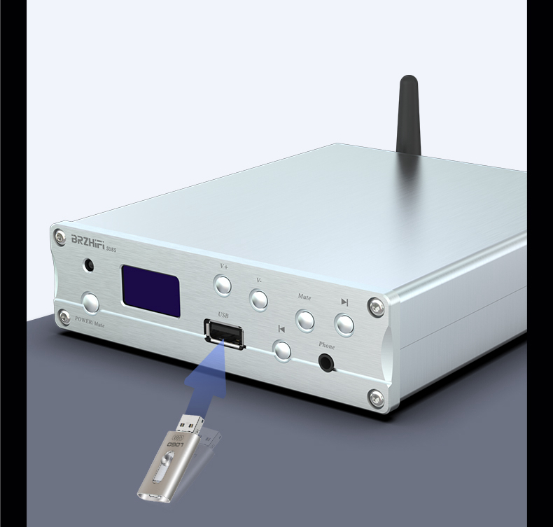 - USB port in the front panel for U disk up to 256G, supporting APE, WMA, FLAC, MP3, WAV and other formats for lossless playback (not for hard disk)