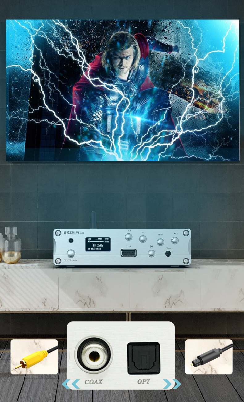 - Coaxial fiber: PCM 44.1K~192K 16~24bit (COAX input supports DOP64)