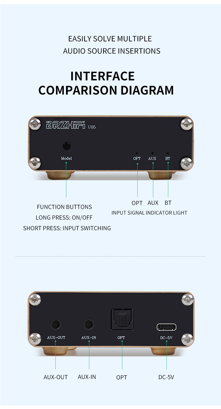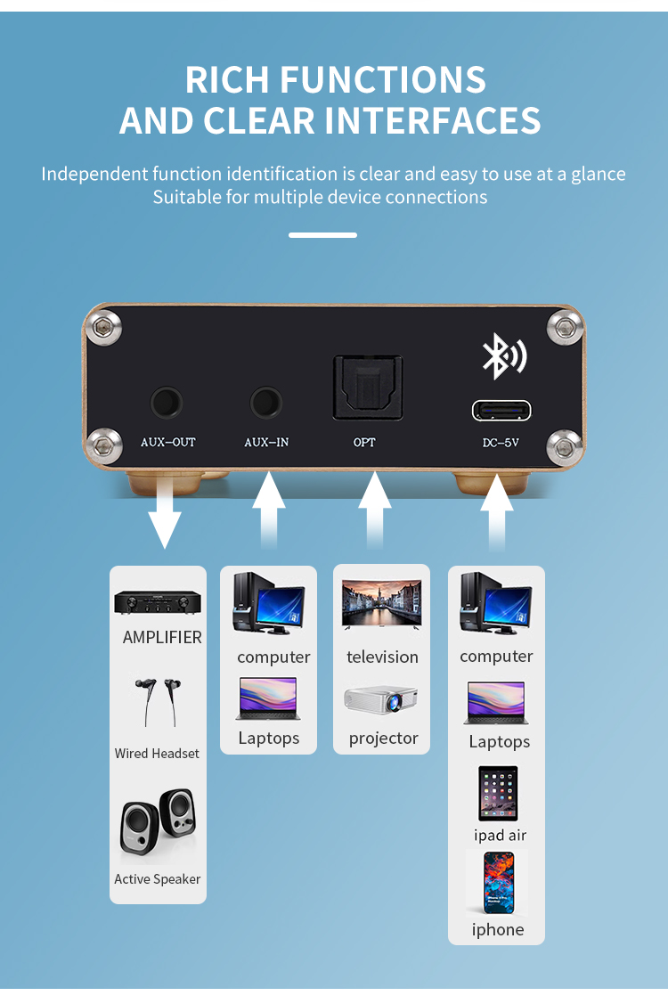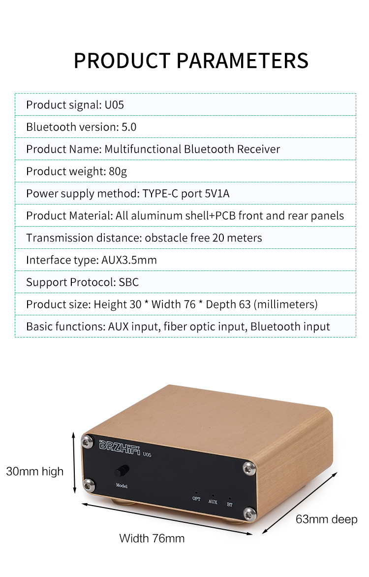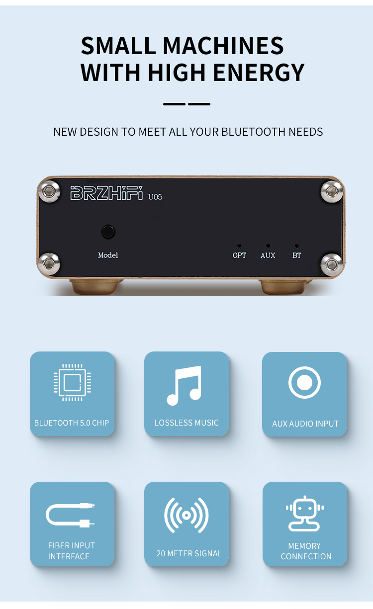 BRZHIFI U05 Multifunctional Bluetooth Receiver HiFi Lossless Audio Output 20 Meter Signal Transmission