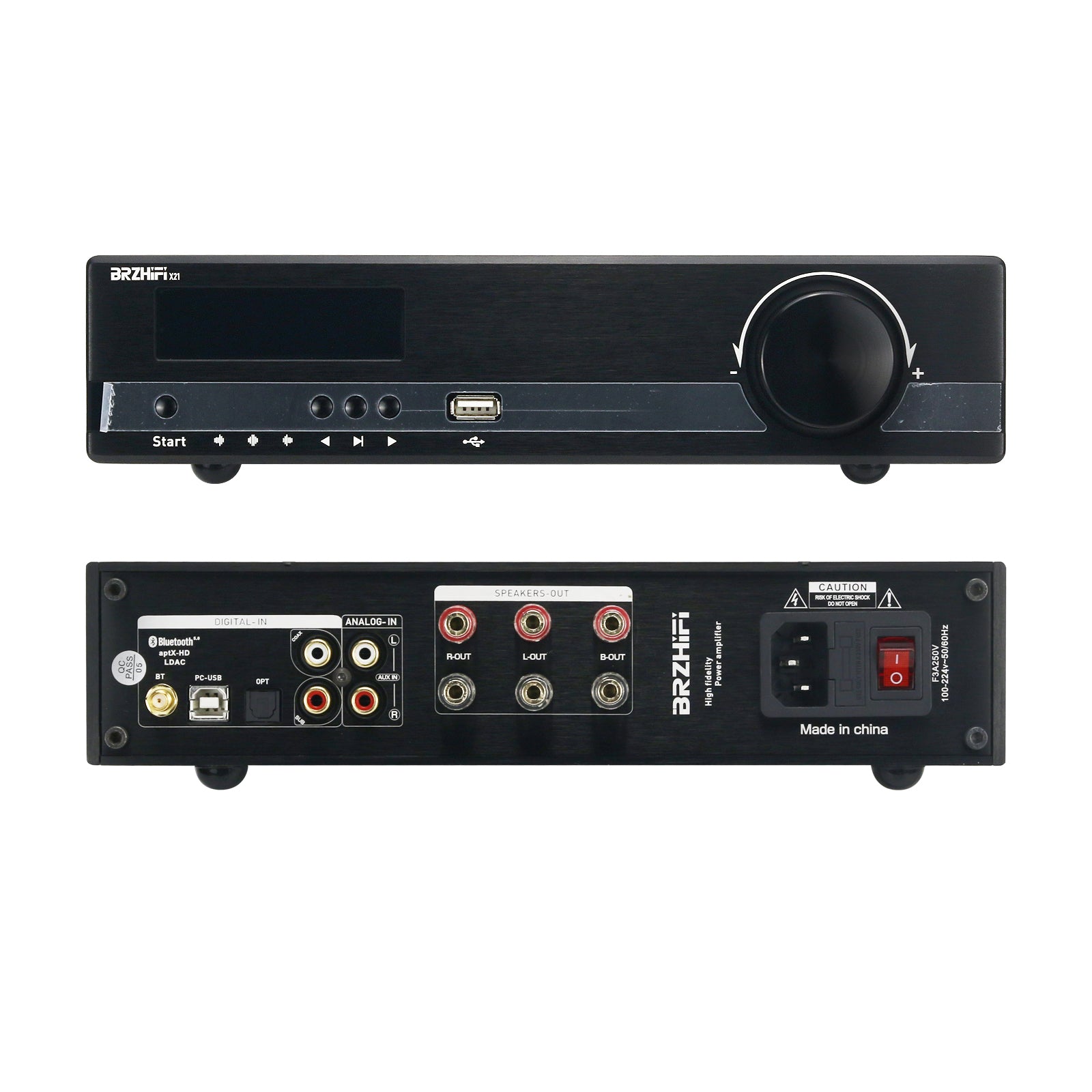 BRZHIFI X21 Audiophile Power Amplifier 2.1Ch Bluetooth Amp Digital Decoder Player HD Lossless Black