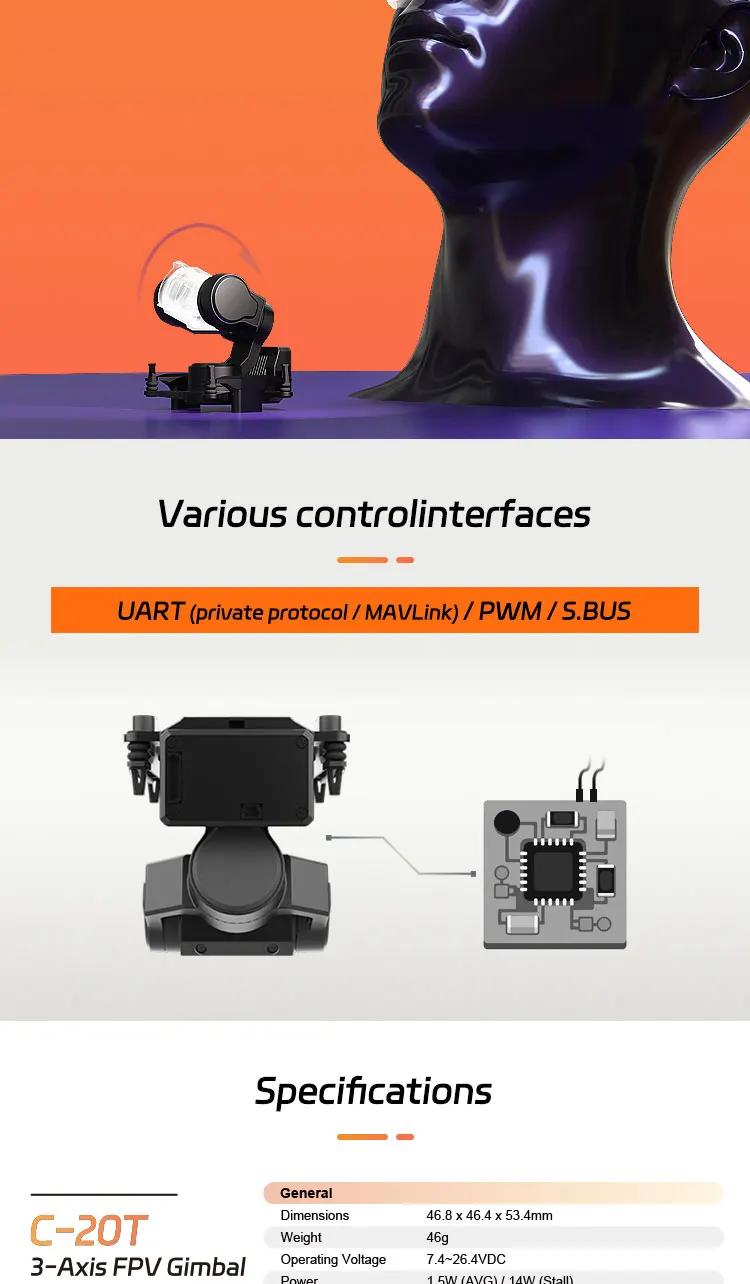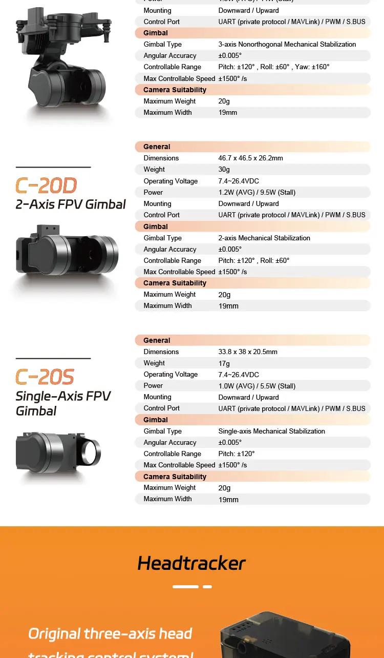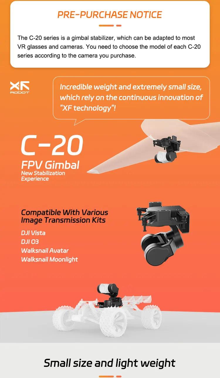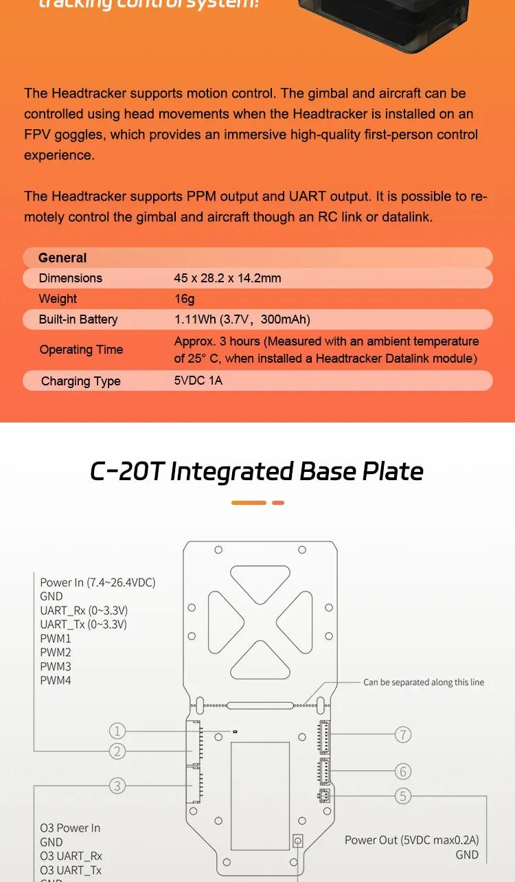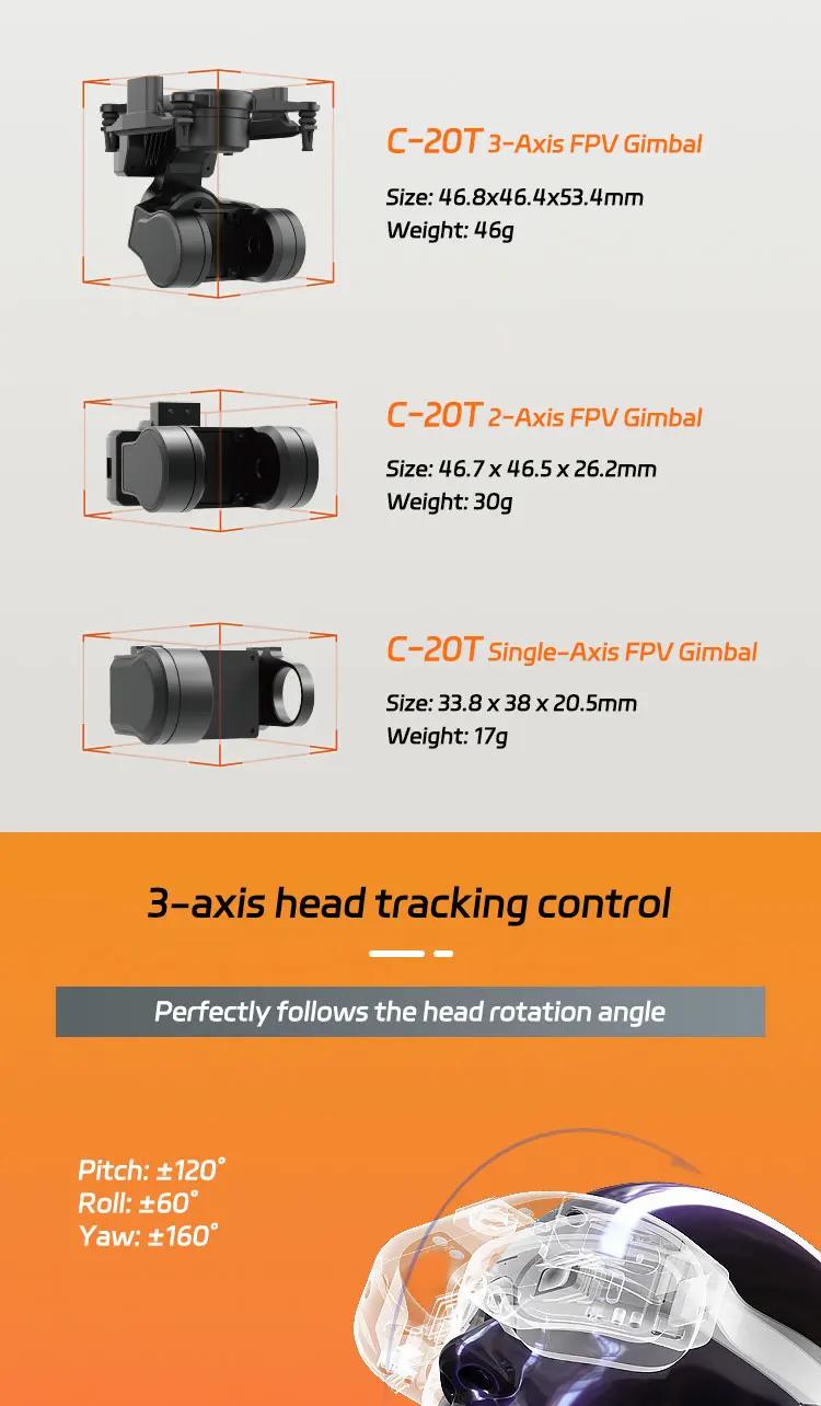 C-20T 3-Axis FPV Gimbal PTZ + USB Debugging Module Kit for DJI O3 + Headtraker Wireless Module Kit for DJI O3