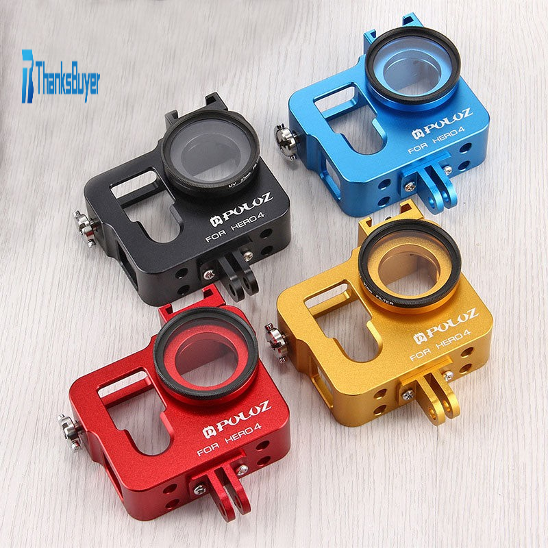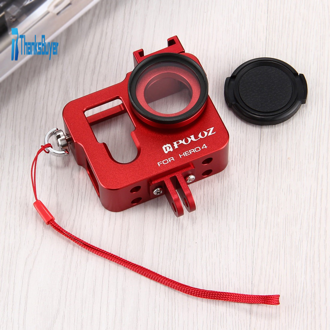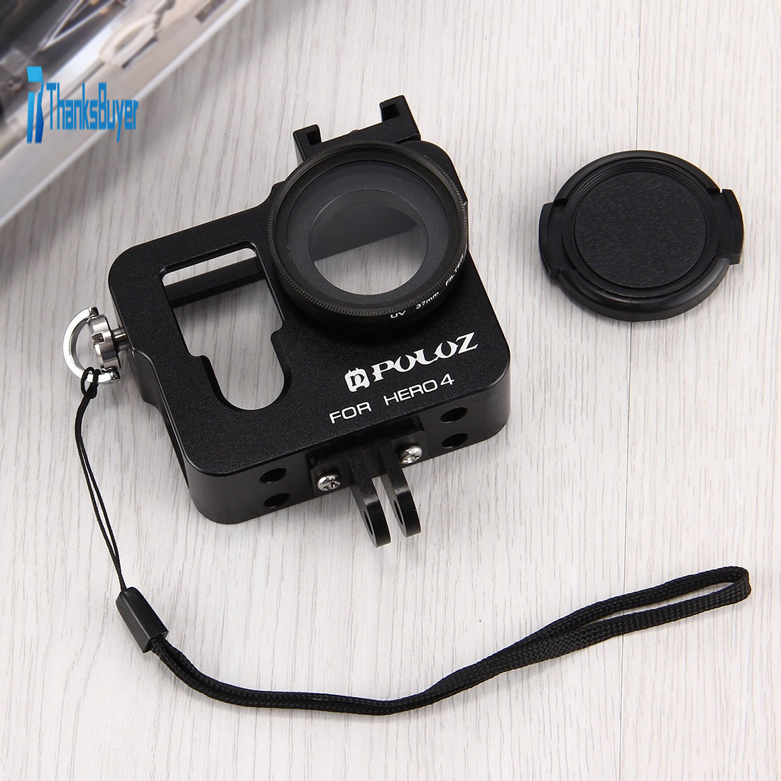 Camera Cage Housing Shell Aluminum Alloy w/ 37mm UV Lens Filter & Lens Cap For GoPro HERO4 PU153