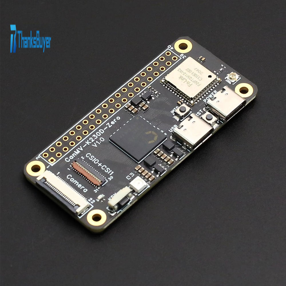 The CanMV-K230D-Zero development board is designed to explore the cutting-edge applications of RISC-V Vector 1.0 technology. This board integrates the high-performance K230D chip, featuring a dual-core Xuantie C908 RISC-V CPU and a self-developed third-generation KPU (Neural Network Processing Unit). With 128MB of onboard LPDDR4 memory, it delivers exceptional local inference computing capabilities. Thanks to its compact design and rich development resources, the CanMV-K230D-Zero is widely suitable for DIY projects, IoT devices, and embedded system development. It is an ideal choice for learning programming, developing edge AI audio-video products, and conducting performance evaluations.