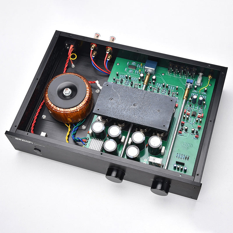 Eight gold-sealed tubes are used for amplification inside the machine. Adopt heavy-duty I-shaped heat-conducting aluminum material, combined with a full-size wide flat heat dissipation top cover, and use the convection heat of air to convey the physical phenomenon of heat dissipation upwards, while ensuring the power output of pure Class A 40W * 2 @ 4Ω, and the heat dissipation problem is also solved (do not cover the upper cover when the machine is working). The design feature of the double wall penetration is to design the volume potentiometer and the signal selection switch at the rear of the machine, with the shortest transmission distance, so as to minimize the signal loss and interference.