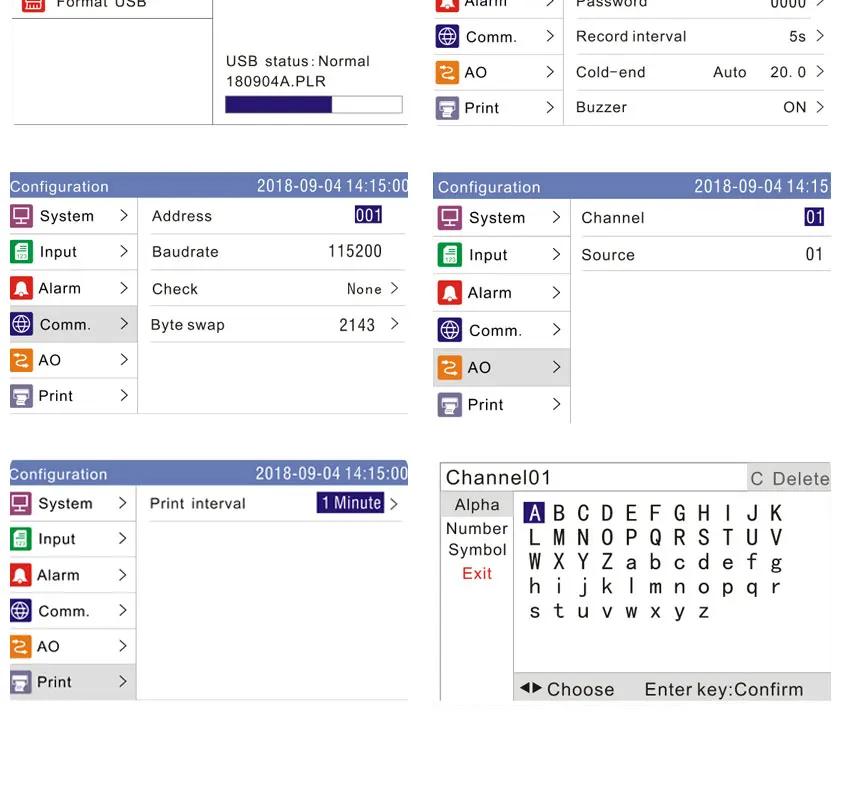 - Other records: 256 alarming records, 256 power-off records, 256 operation logs