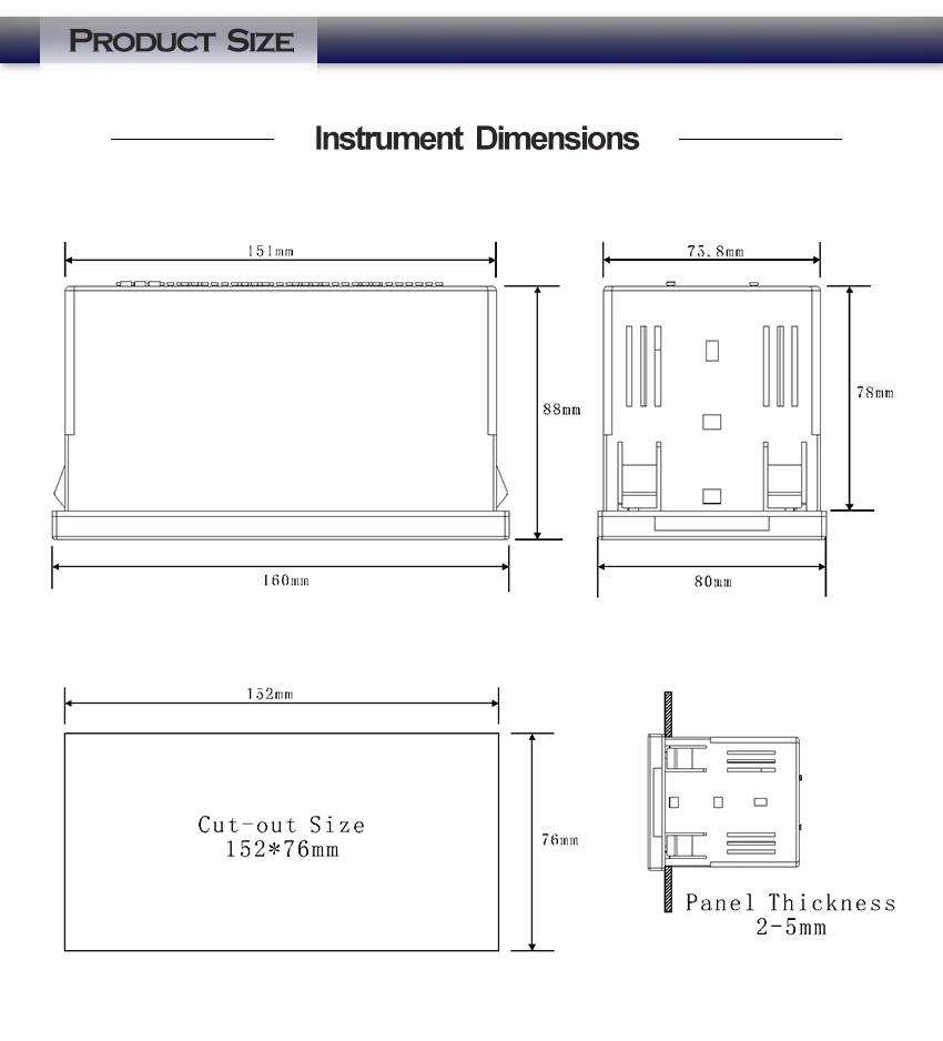 - Recorder dimension: panel 160 x 80mm, depth 100mm, opening 152 x 76mm