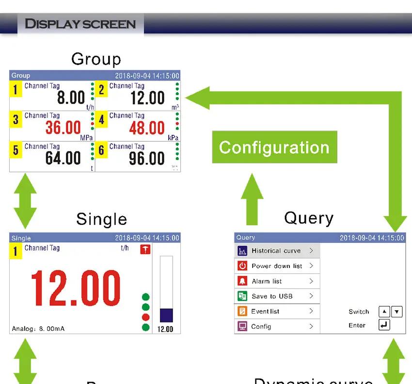 - Transmission output: 2-channel 4-20mA transformer output, load ≤ 759ohms, precision 0.2%
