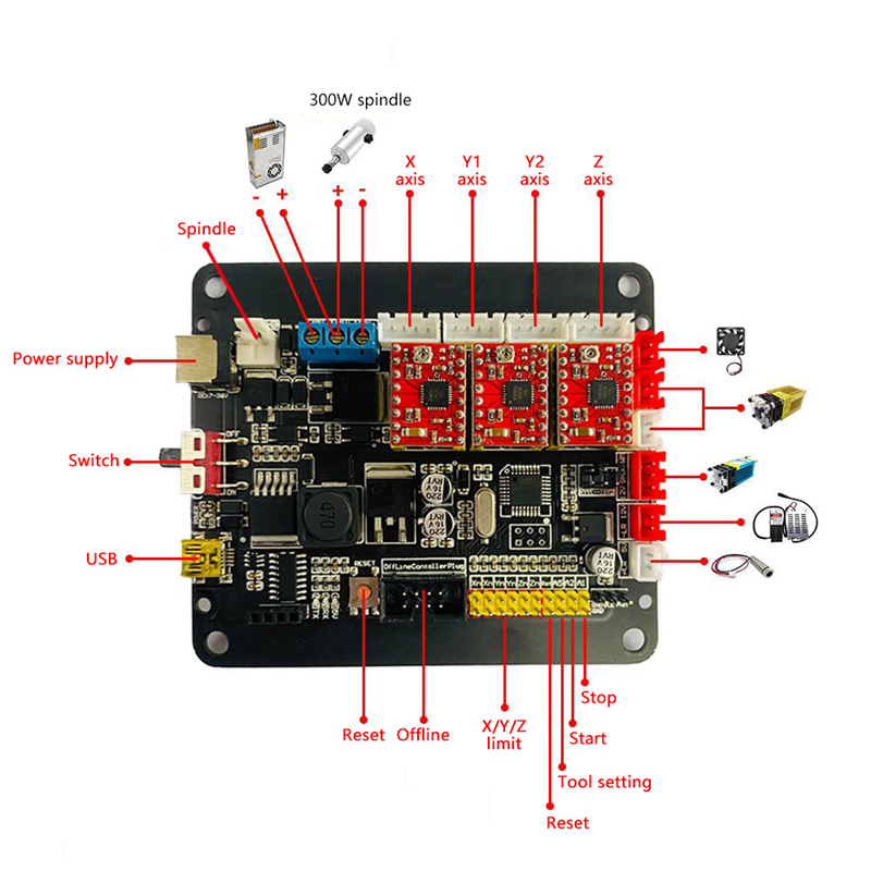 3. Supports functions such as limit switch, tool setting, servo, cooling fan, etc.