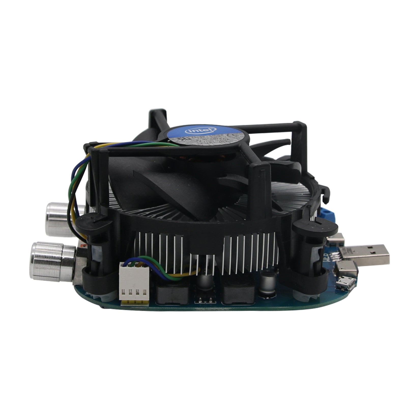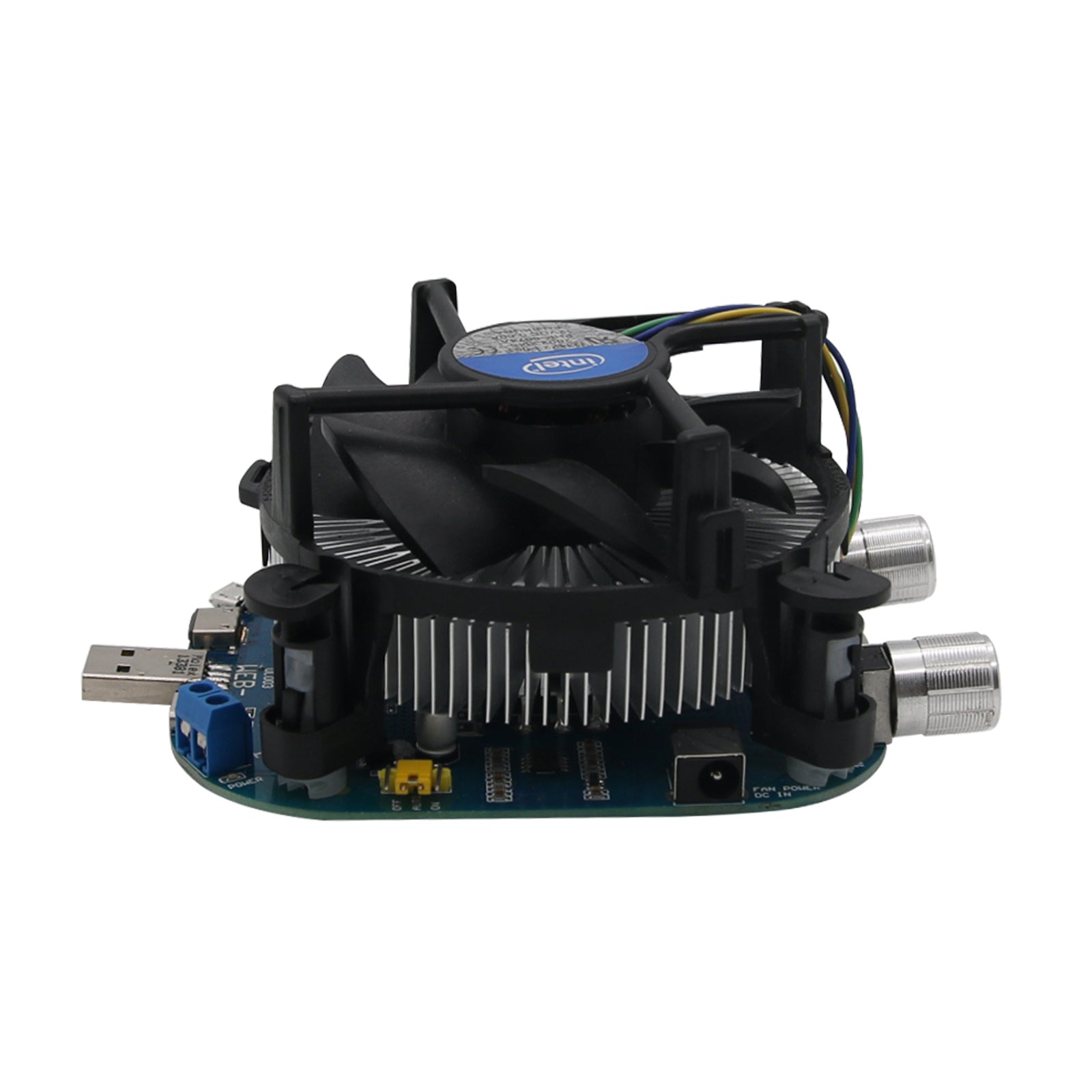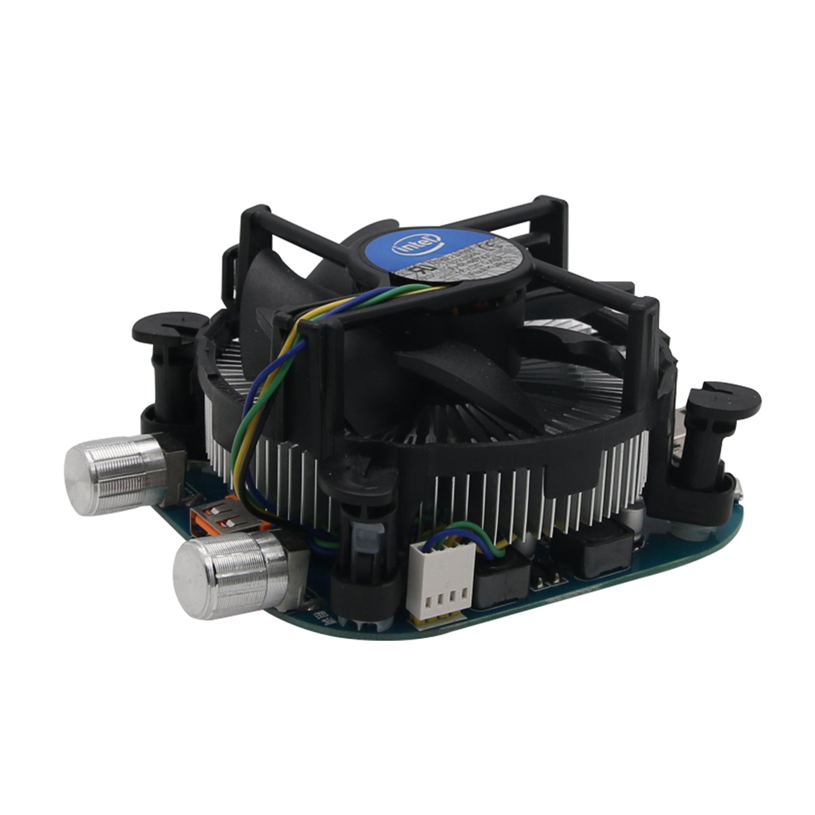 - When the external power supply is 5-24V, the system will automatically switch it to 12V to power the fan by using the buck-boost circuit. Therefore, users who replace the fan by themselves should use 12V DC cooling fan with 1155 interface.
