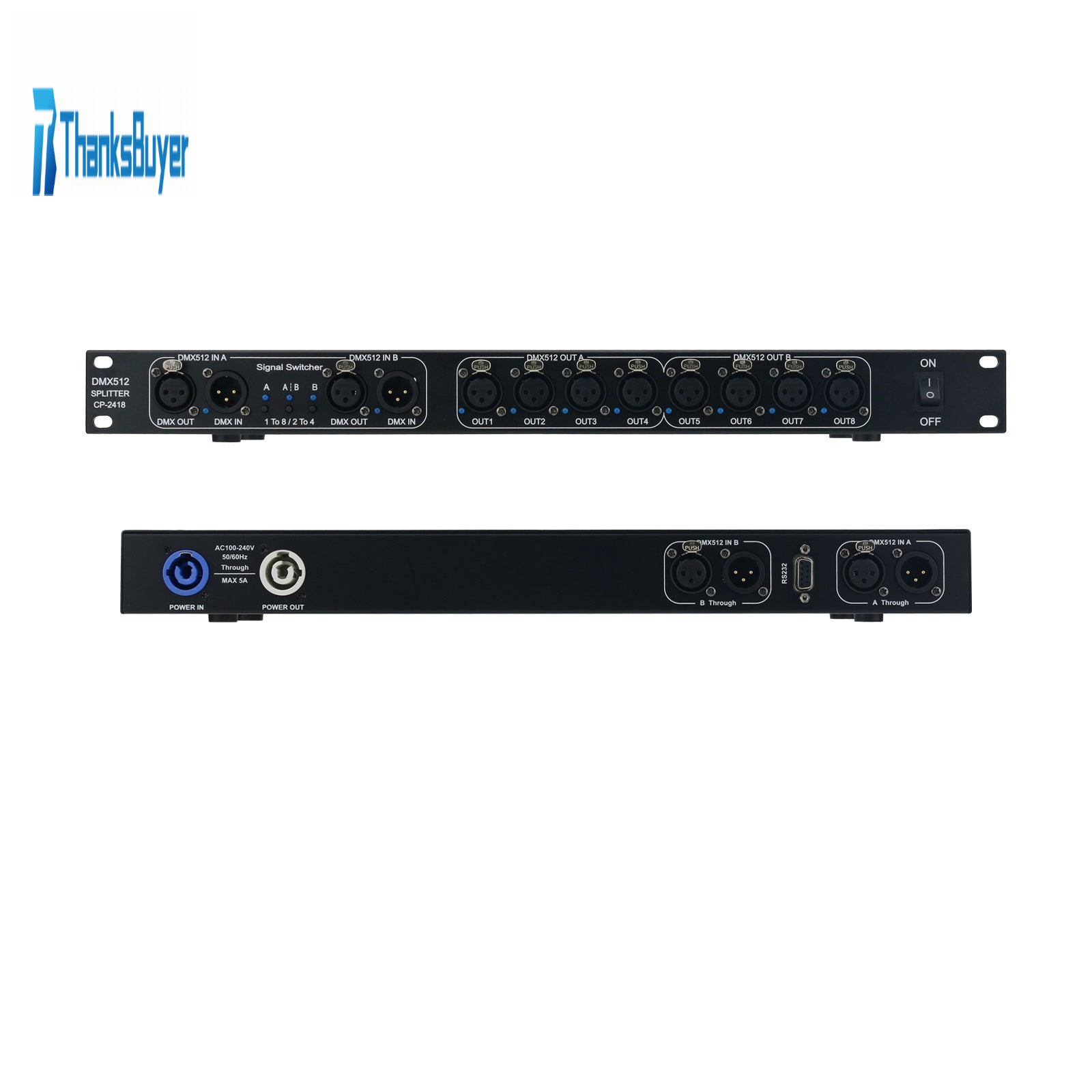 CP-2418 DMX Splitter DMX Amplifier DMX512 Distributor 2 Signal Input 8CH Output for Stage Light PAR