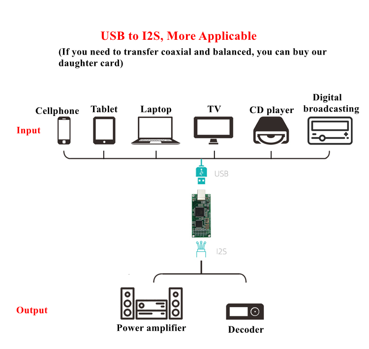 - Use scenario: computer USB connection decoder. Let your decoder without USB connect to your computer to play music. Old-style decoders can also be connected to a computer, with richer digital music resources (coaxial and balanced adapter boards are optional). Add USB input for decoder