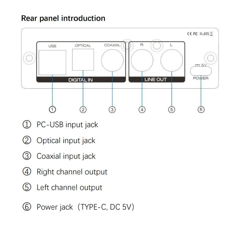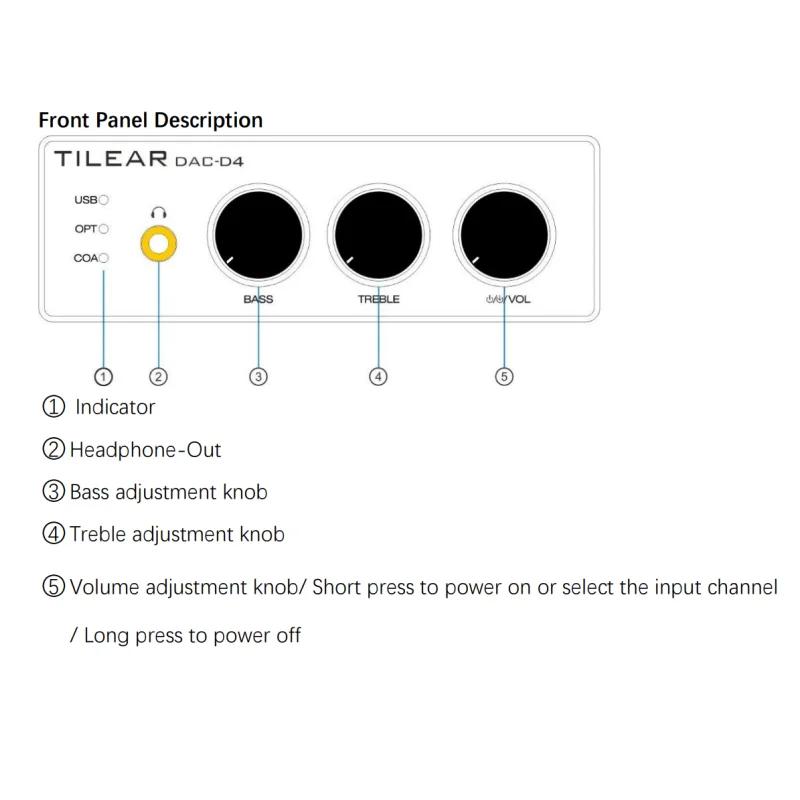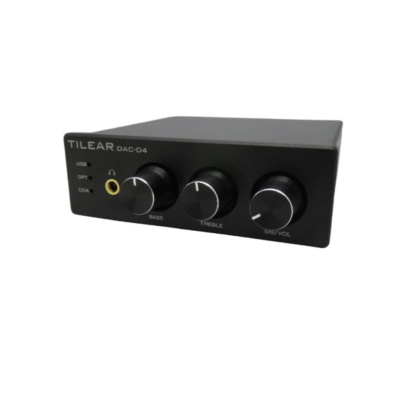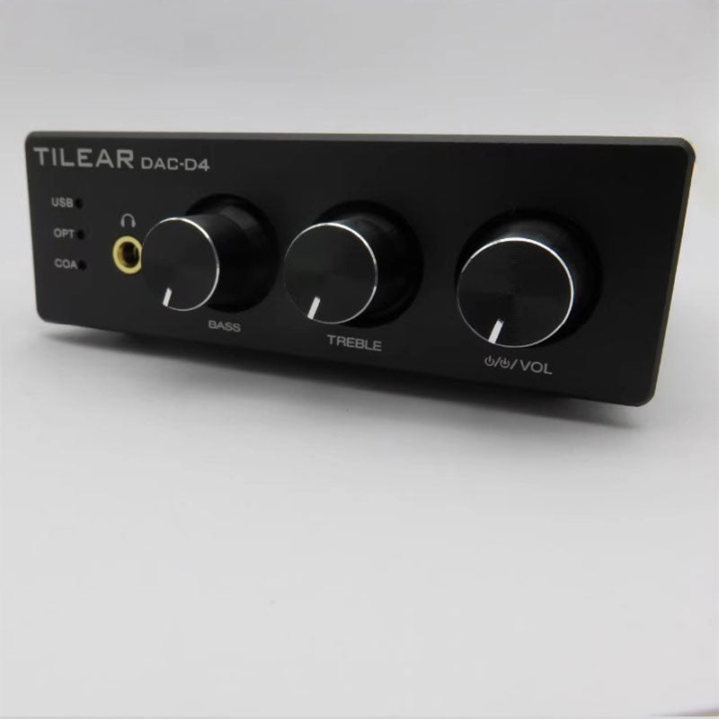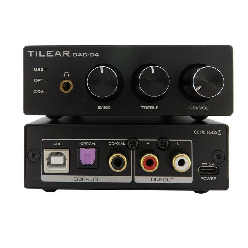 - USB, fiber optic, coaxial one click switching, small size, exquisite appearance, with treble and bass adjustment knobs, RCA interface can be directly connected to power amplifiers or active speakers.