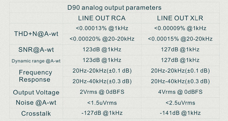 - Pure DAC application: D90 can also turn off the volume control function and maintain the maximum level of 4Vrms (XLR balanced) and 2Vrms (RCA single-ended) output, so D90 works as a pure DAC.