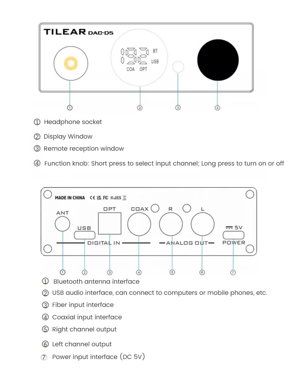- Input channels: Bluetooth, USB, coaxial, fiber optic (coaxial fiber optic supports up to 24Bit/192kHz).