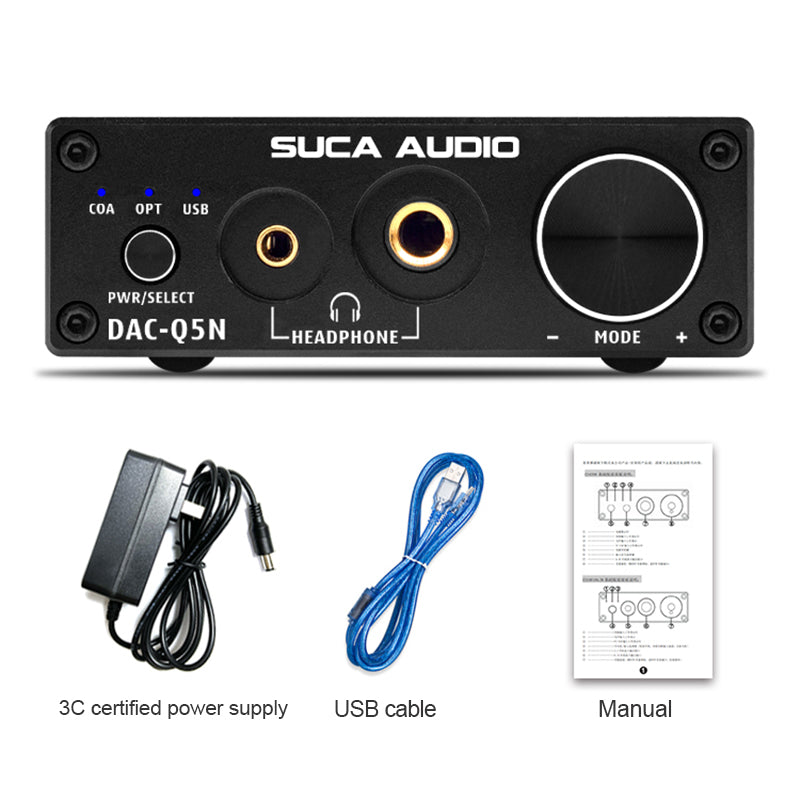 - Multi-function DAC is compatible with most devices. DAC-Q5N is a multifunctional DAC and headphone amplifier, with PC-USB/optical/coaxial digital signal input. Compatible with most audio equipment, such as mobile phones, computers, TVs, CDs, players, etc. And with stereo RCA/6.35mm and 3.5mm headphone output.