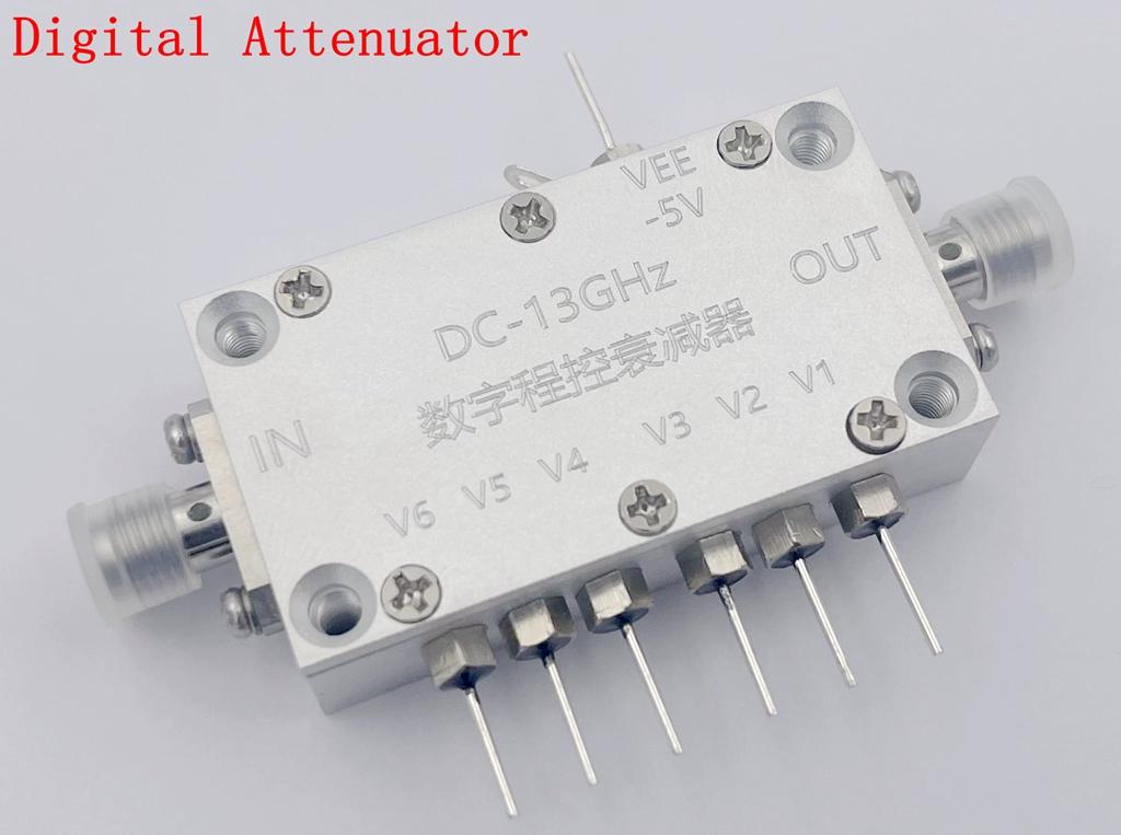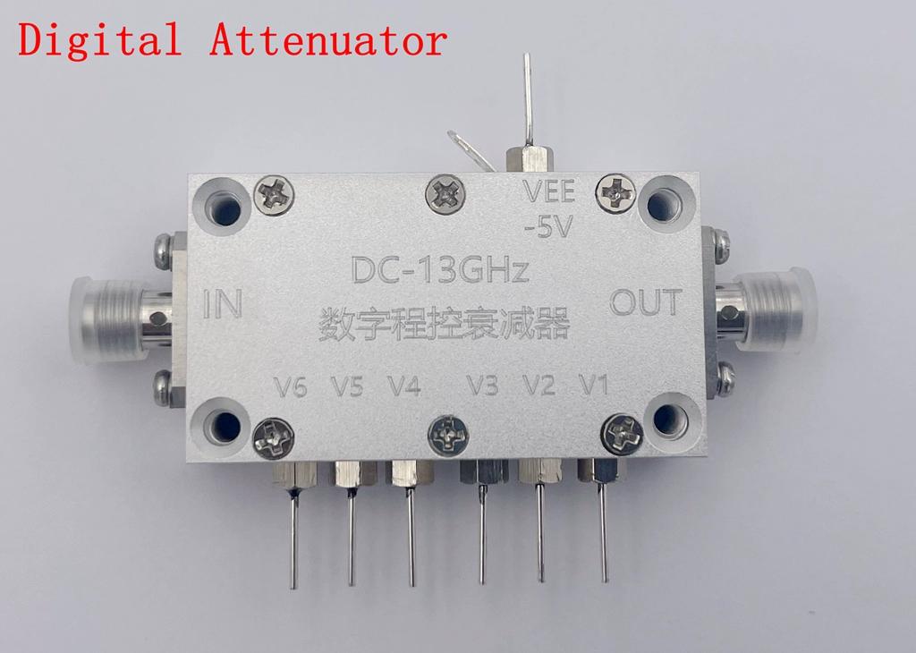 - The digital programmable attenuator is used to adjust the signal level in the transmission and reception communication system. The module adopts digital programmable control technology and 6BIT parallel control to achieve the signal size adjustment within the DC-13G ultra wideband frequency range. The module is controlled in parallel mode, with control interface reserved, and can be controlled by external mechanical switches or external MCU. The attenuation step is 0.5dB to achieve 31.5dB broadband attenuation adjustment; The module is packaged in a CNC shell, which has good electromagnetic shielding performance and can be cascaded with other modules, widely used in transmission and reception communication systems.
