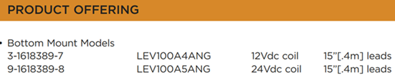 DC Contactor 12V Coil LEV100A4ANG 3-1618389-7 High-Voltage DC Relay For New Energy Vehicles