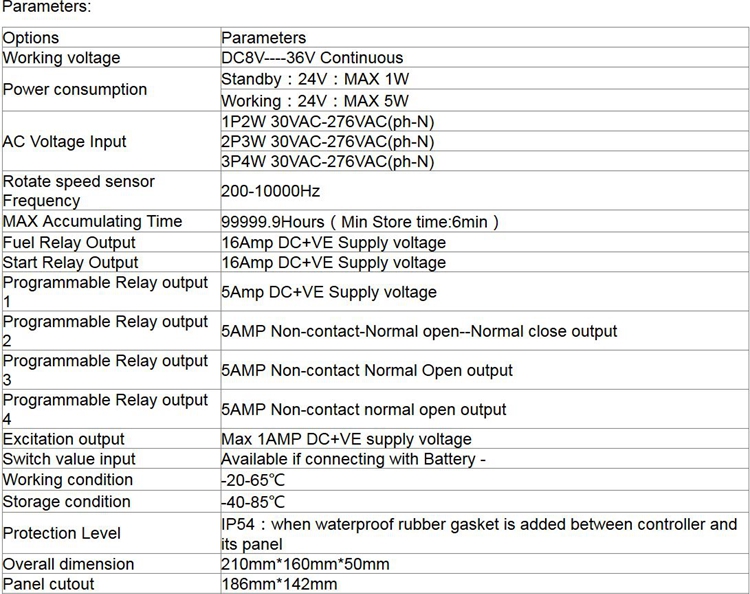 This series controller is specialized for Diesel / Gasoline / Gas Genset Start, Stop, Parameters monitoring, faults-checking as well as data setting.