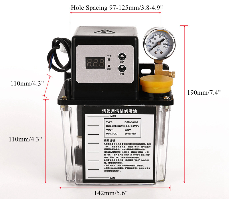 DCR-50/1C Automatic Lubrication Pump Lubricating Pump 1.0L Single Display (With Pressure Gauge)