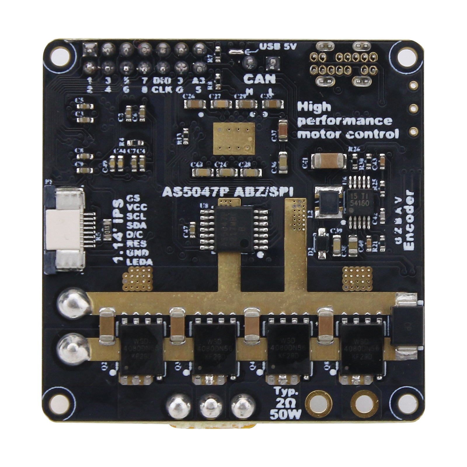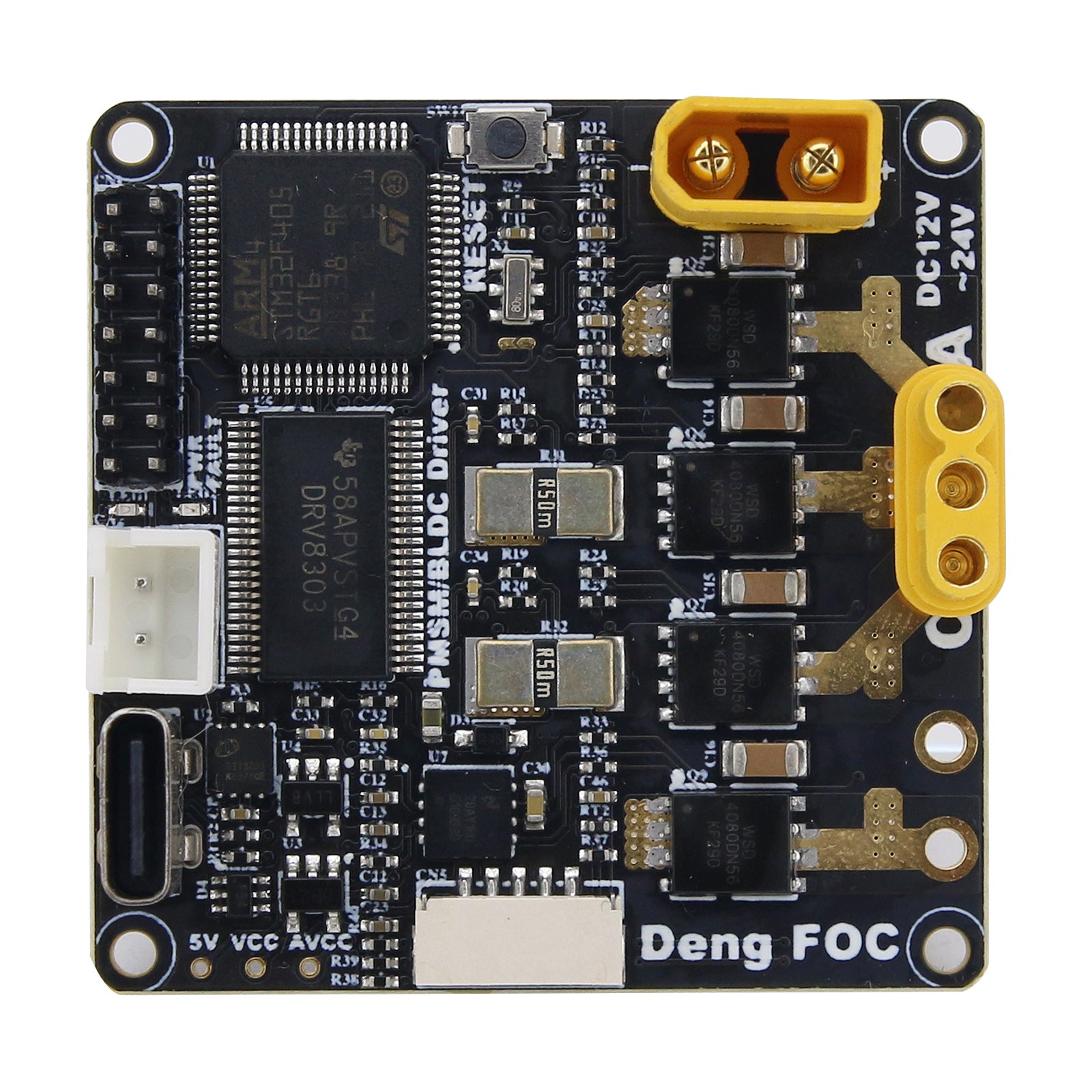 Deng FOC, a highly integrated FOC driver, is suitable for three-phase brushless DC motors and permanent magnet synchronous motors. Based on the powerful and stable open source project O Drive, we optimized the circuit, reduced the size, and optimized the interface to improve the expandability of the driver. Deng FOC driver supports driving high-current motors, and can realize closed-loop control of FOC position, speed, and torque. The encoder supports ABZ mode and SPI mode (onboard), which can detect the temperature of the drive in real time. Further more, Deng FOC reserves a variety of interfaces, including USB, CAN, GPIO expansion, and FPC serial port (which can realize screen display or wireless control), allowing users to develop freely. More importantly, we also further reduce costs and are committed to creating the most cost-effective FOC motor driver.
